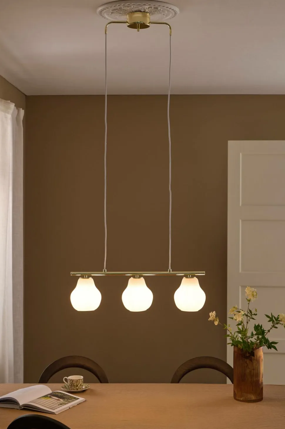 • Tre lampeskærmer i opalhvid glas med riflet struktur