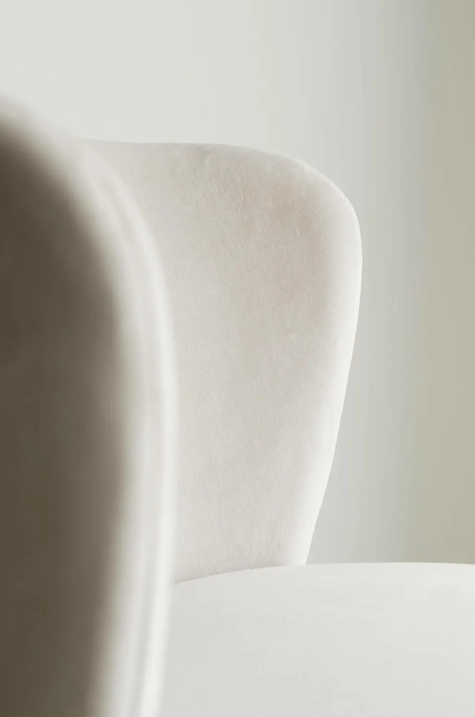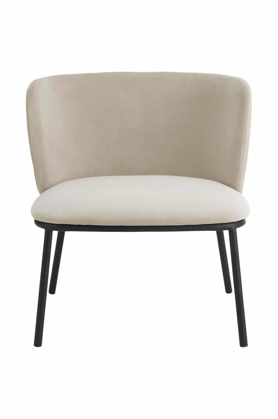 Loungestol i skandinavisk, stilren design med skålformet ryglæn. Betræk med skumfyld. Ben af metal. Lettere samling.