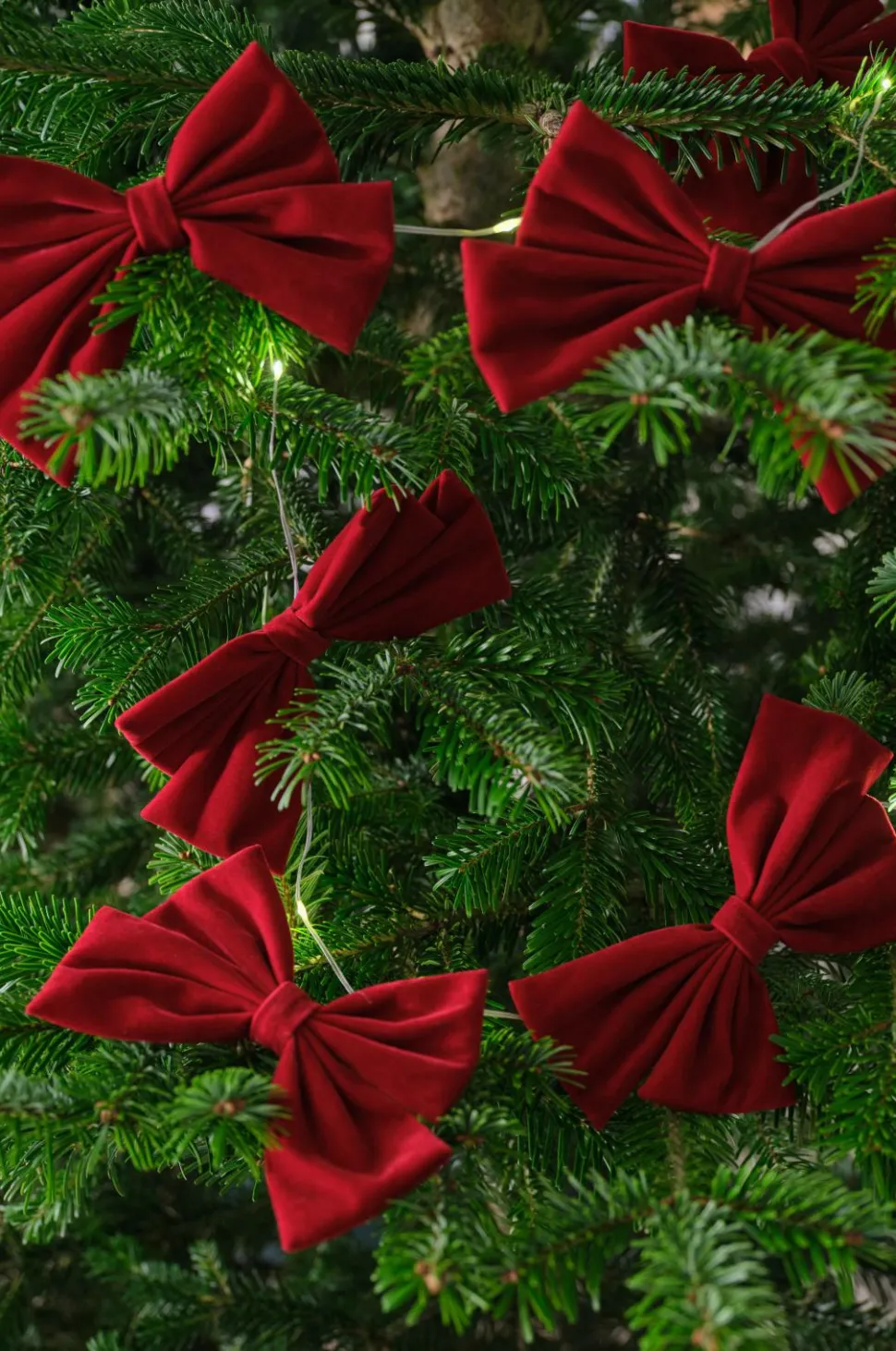 • Otte bånd i fløjl med LED-belysning