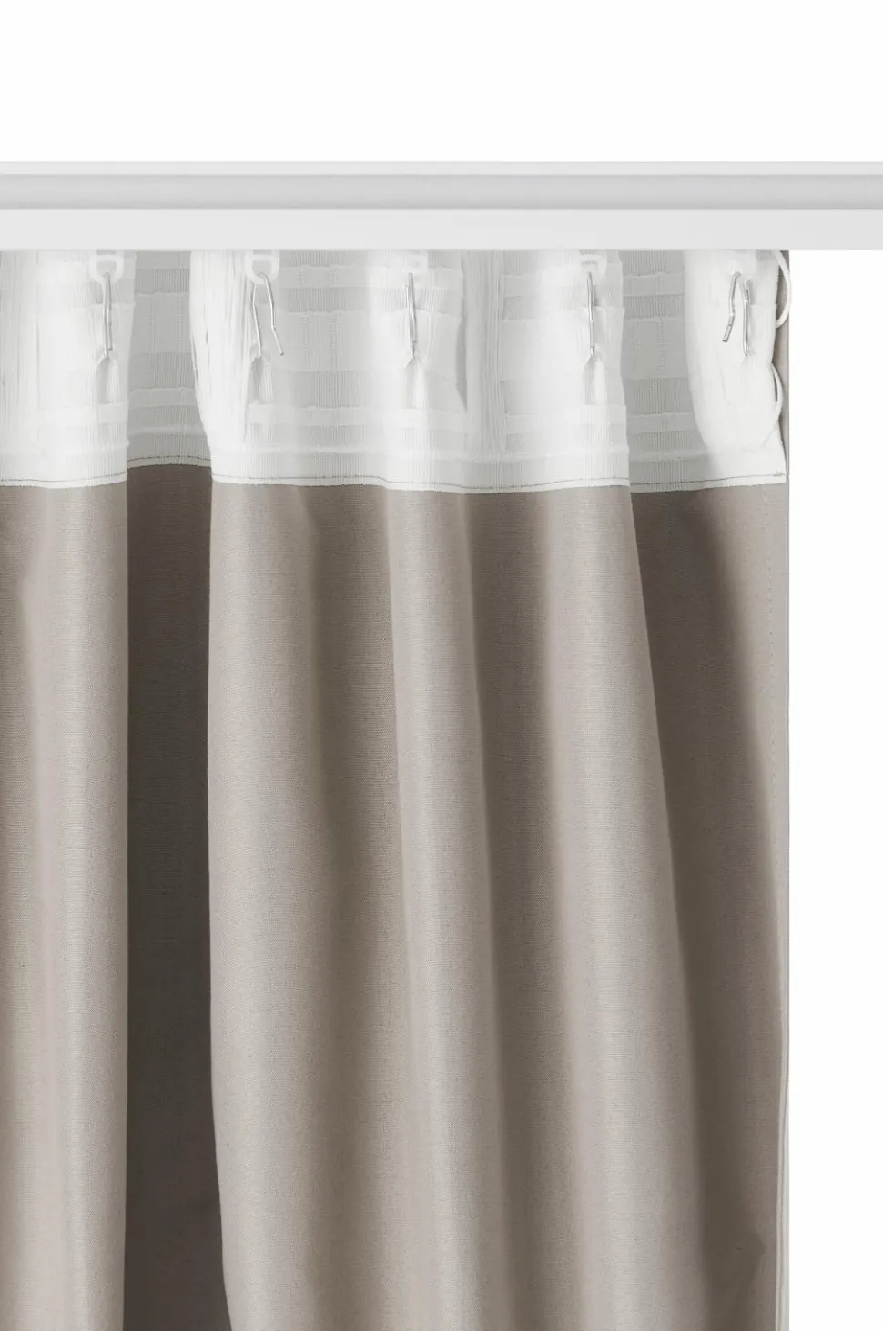 • Multibåndet gør, at du enten kan hænge gardinet direkte på en gardinstang gennem de skjulte øjer eller bruge ringe, pin-kroge eller fingerkroge. Snorene i rynkebåndet gør det nemt at lave jævne, fine folder.