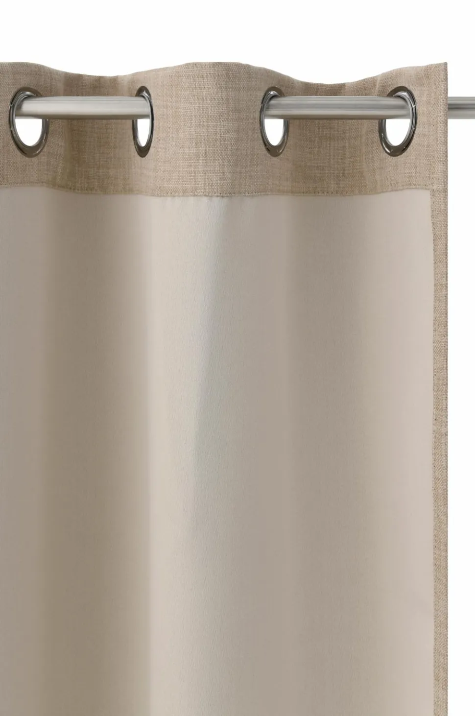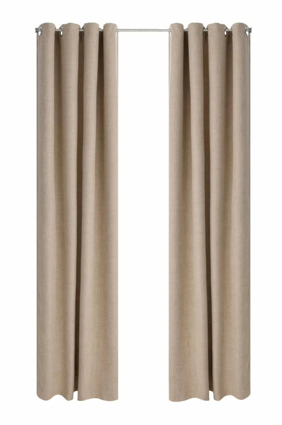 Mørklæggende gardin i hørlook med struktur og meleret effekt. Sejlringe i sølvfarvet metal. Et vævet mellemlag med indvævede sorte tråde gør, at gardinet lukker lyset ude. Matchende farve tone-i-tone på bagsiden. Bredde 140 cm. 2 længder: 220 og 250 cm. Stryges fugtige ved middelvarme på bagsiden.