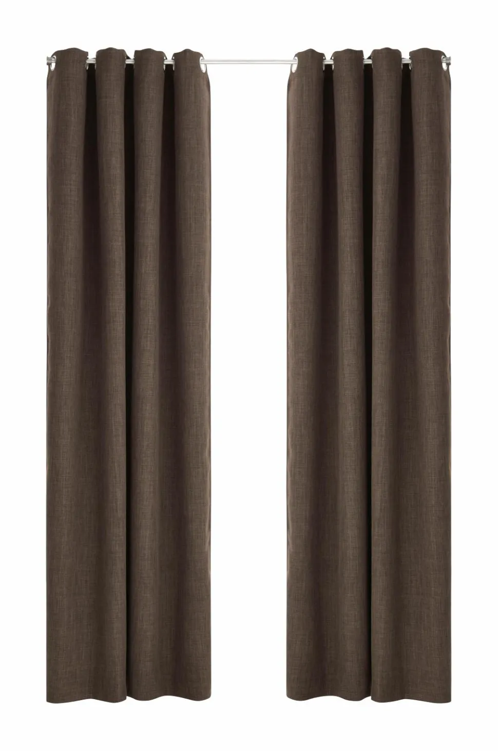 Mørklæggende gardin i hørlook med struktur og meleret effekt. Sejlringe i sølvfarvet metal. Et vævet mellemlag med indvævede sorte tråde gør, at gardinet lukker lyset ude. Matchende farve tone-i-tone på bagsiden. Bredde 140 cm. 2 længder: 220 og 250 cm. Stryges fugtige ved middelvarme på bagsiden.