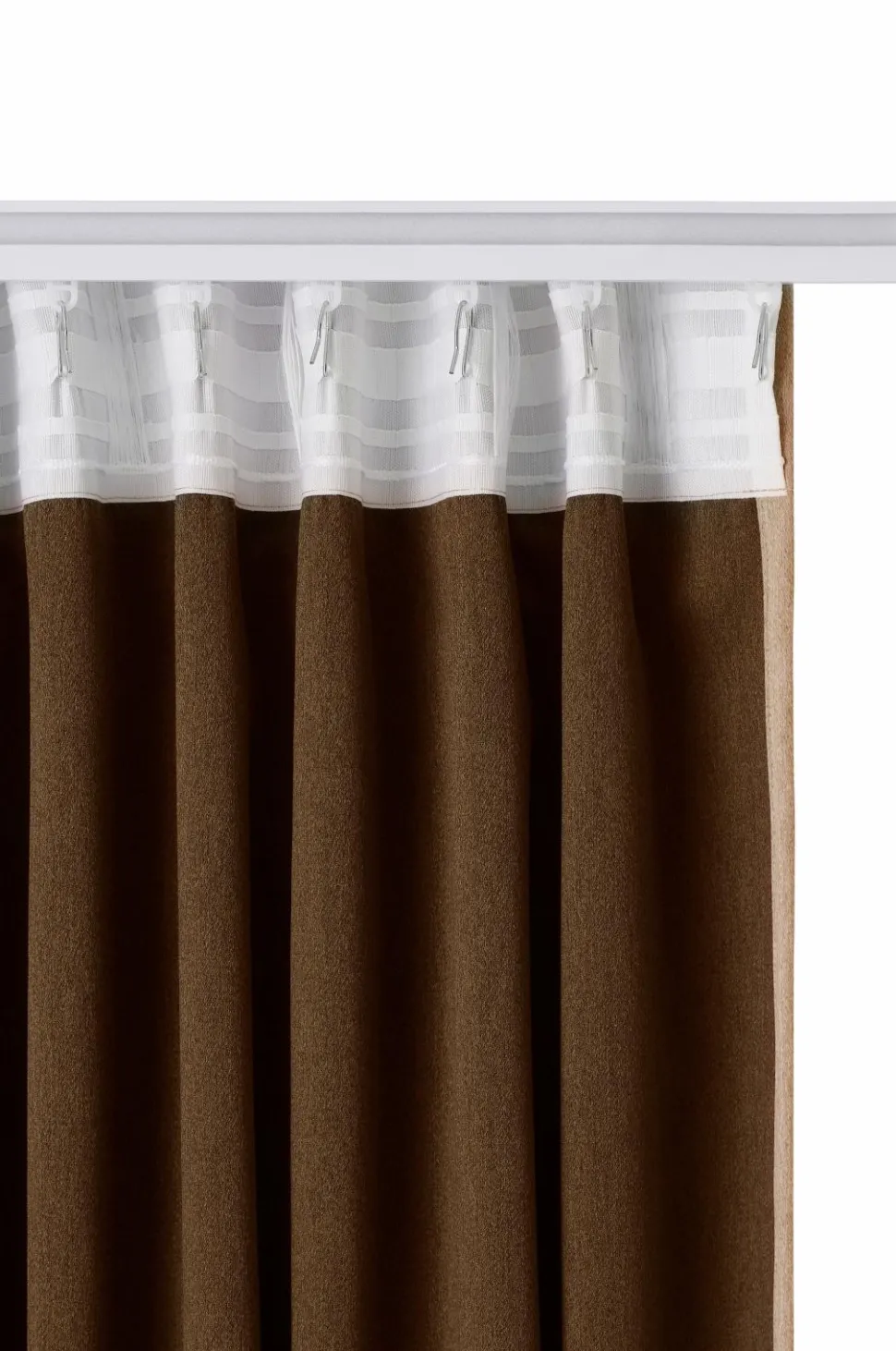 • Multibåndet gør, at du enten kan hænge gardinerne direkte på en gardinstang gennem de skjulte stropper eller anvende ringe, nålekroge eller fingerkroge. Snoren i rynkebåndet gør, at du let kan skabe ensartede, flotte læg.