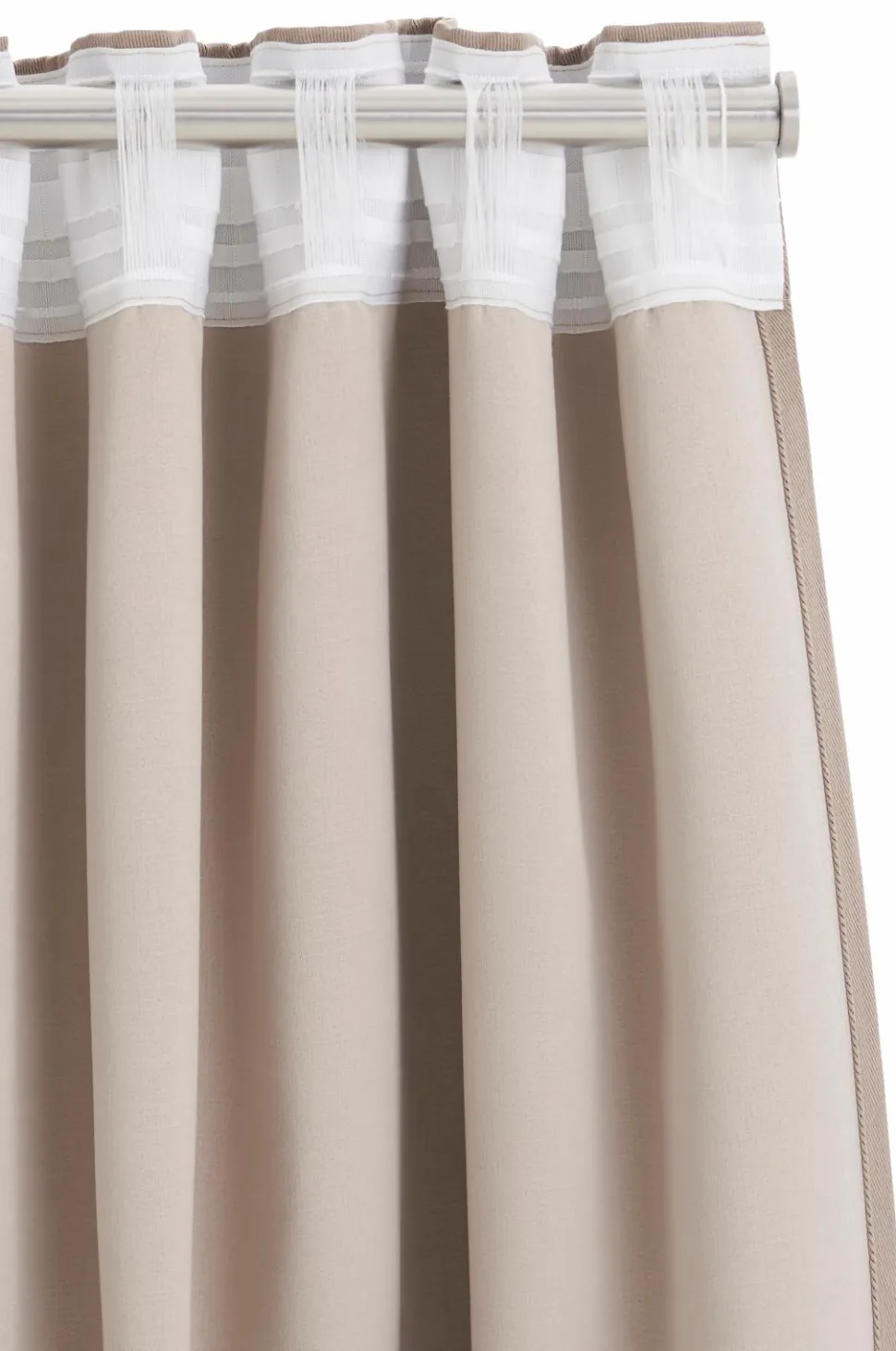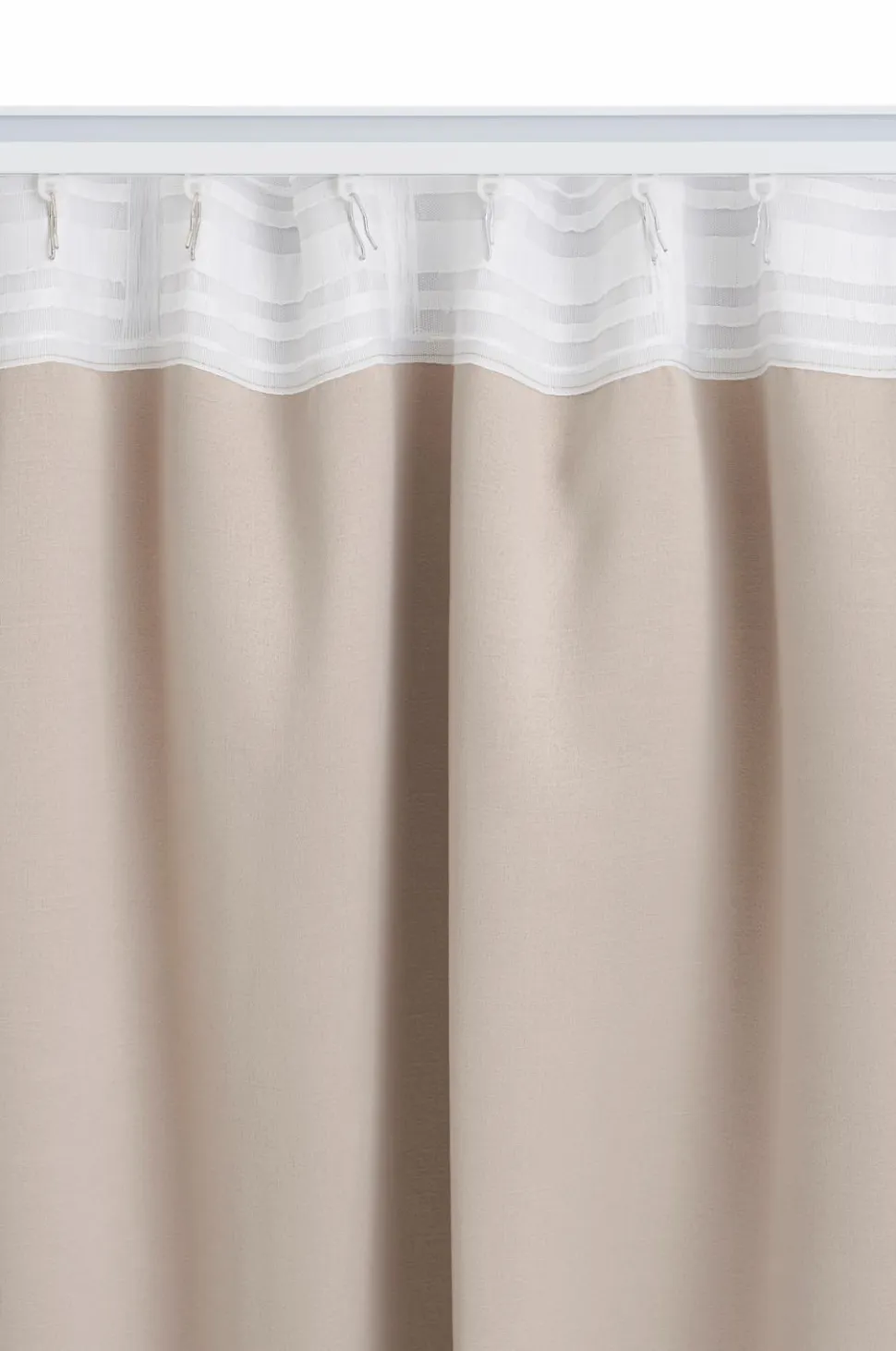 Mørklægningsgardin i twill med fin glans. Et vævet mellemlag med indvævede sorte tråde gør, at gardinet lukker lyset ude. Gardinet har multibånd, som gør at du kan trække det direkte på en gardinstang eller bruge ringe og nålkroge (ikke fingerkroge). Snoren i rynkebåndet gør, at du let kan skabe ensartede, flotte læg. Bredde 135 cm. Tre længder: 220, 250 og 300 cm. Sælges i 1-pak.