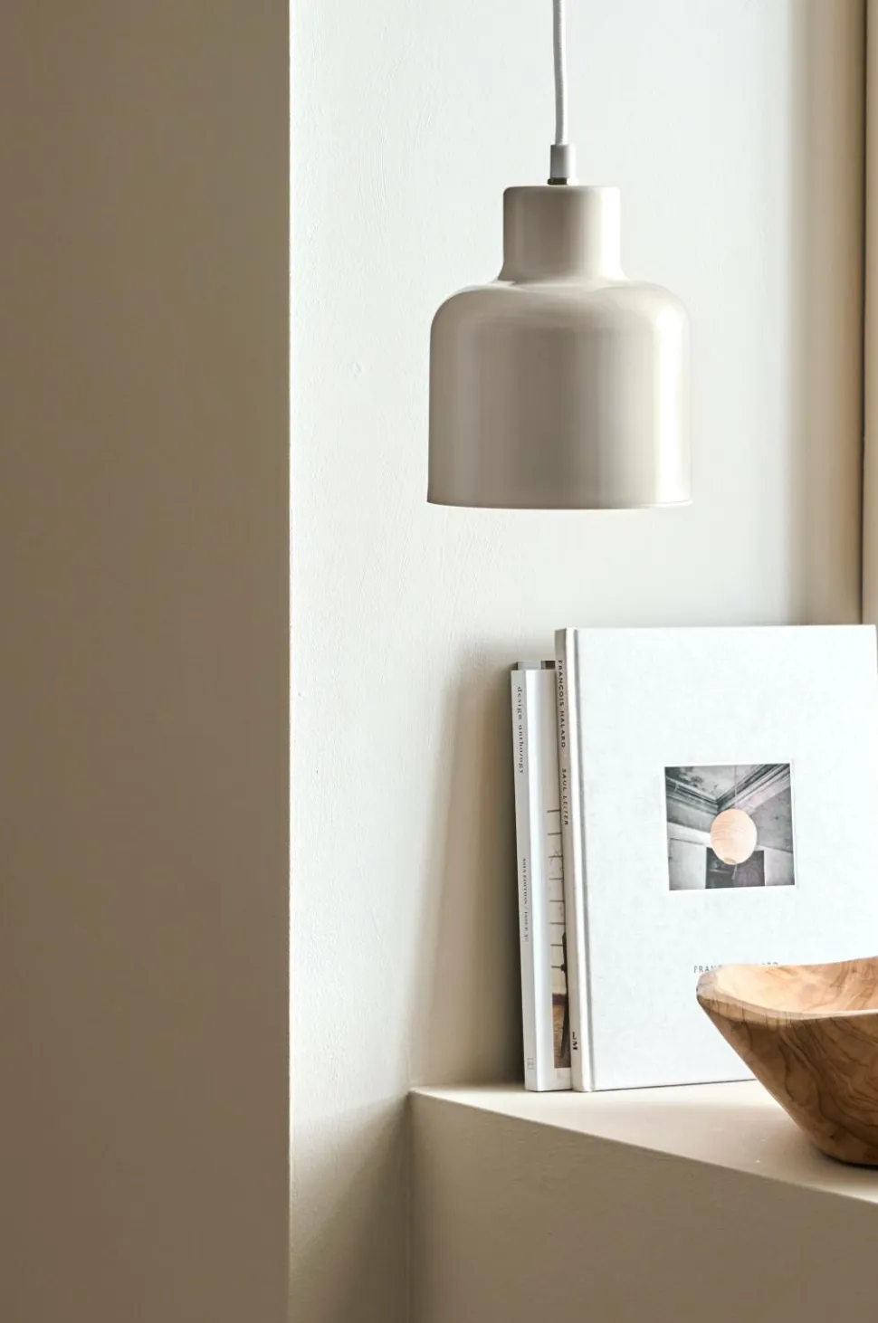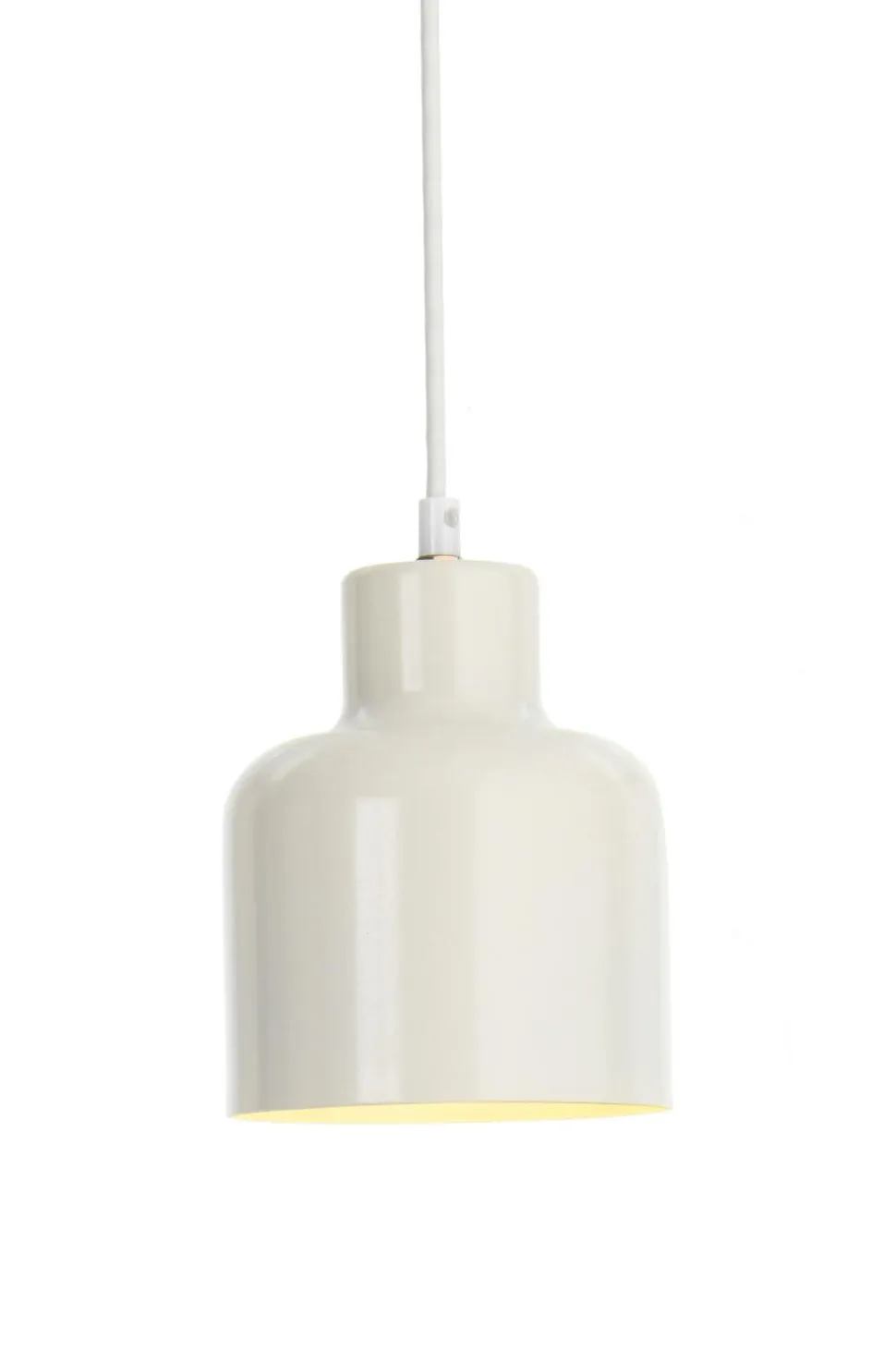 Pendel af metal. Mål på skærm: Diameter 14 cm, højde 16 cm. Stofledning med vægstik. Pære medfølger ikke.