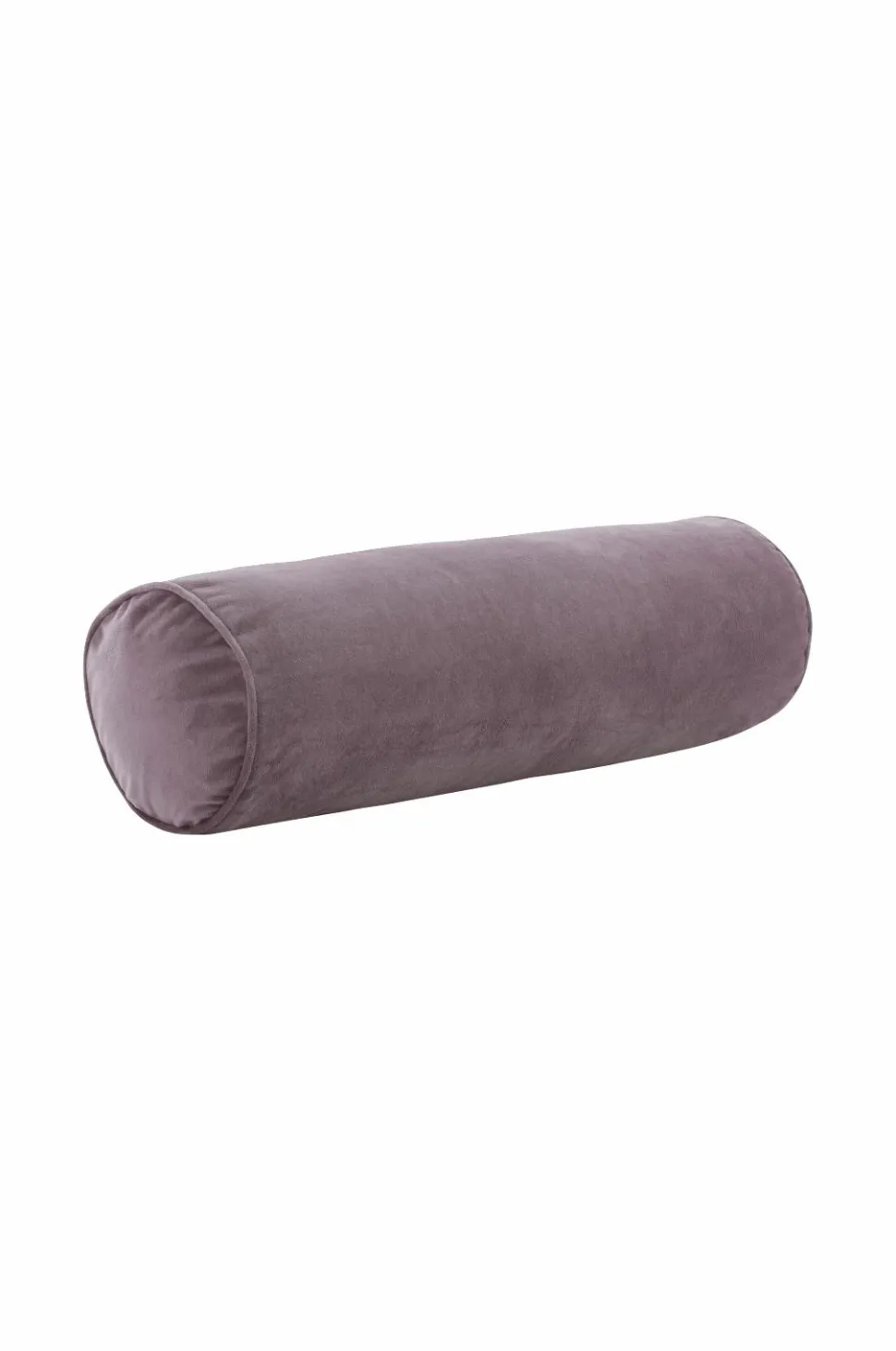 Cylinderformet pude i velour med monteringspude i polyester. Paspoleret kant i enderne. Af genindvundet polyester. Lynlås på undersiden. Bredde 55 cm, diameter 18 cm.