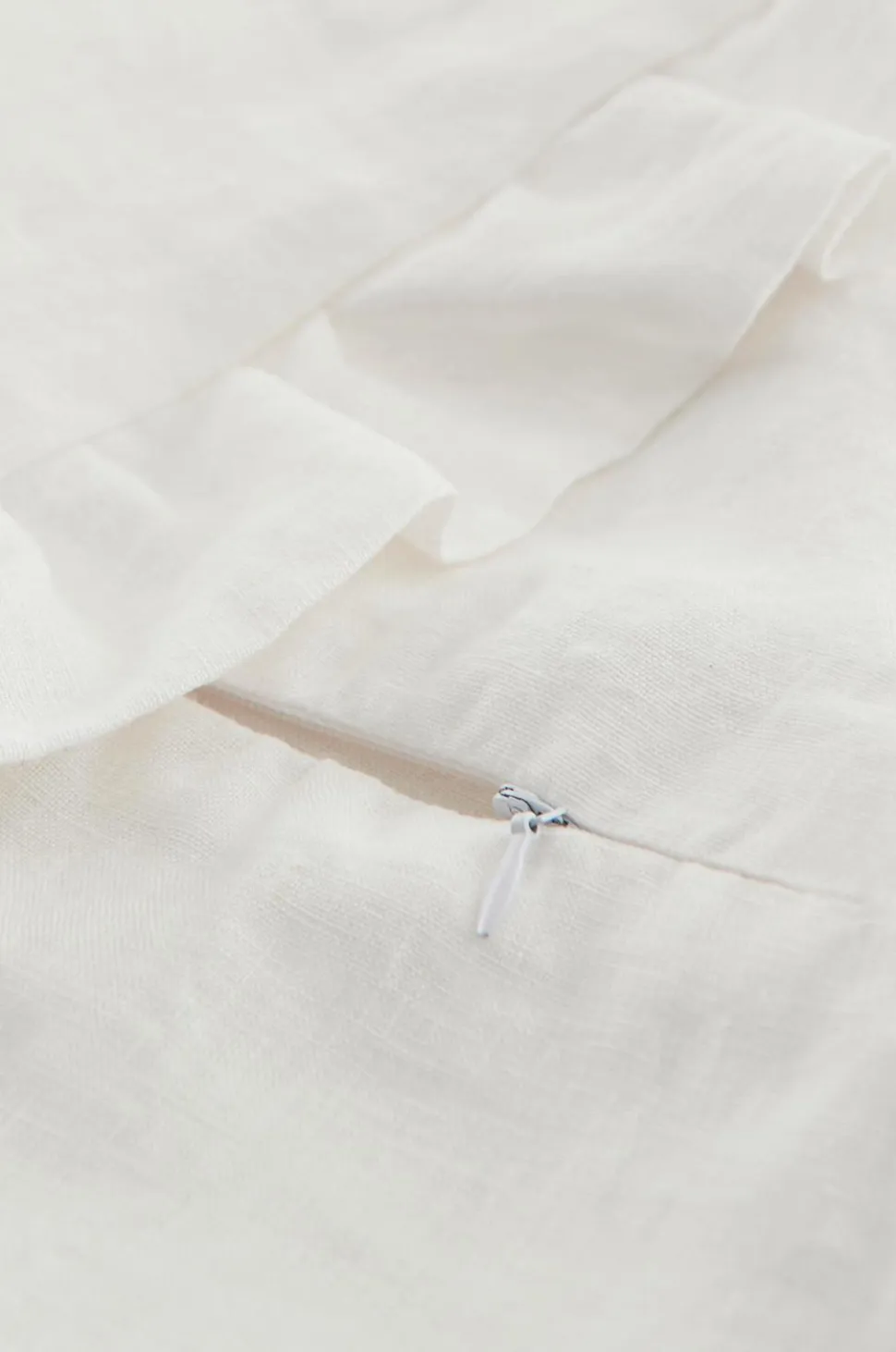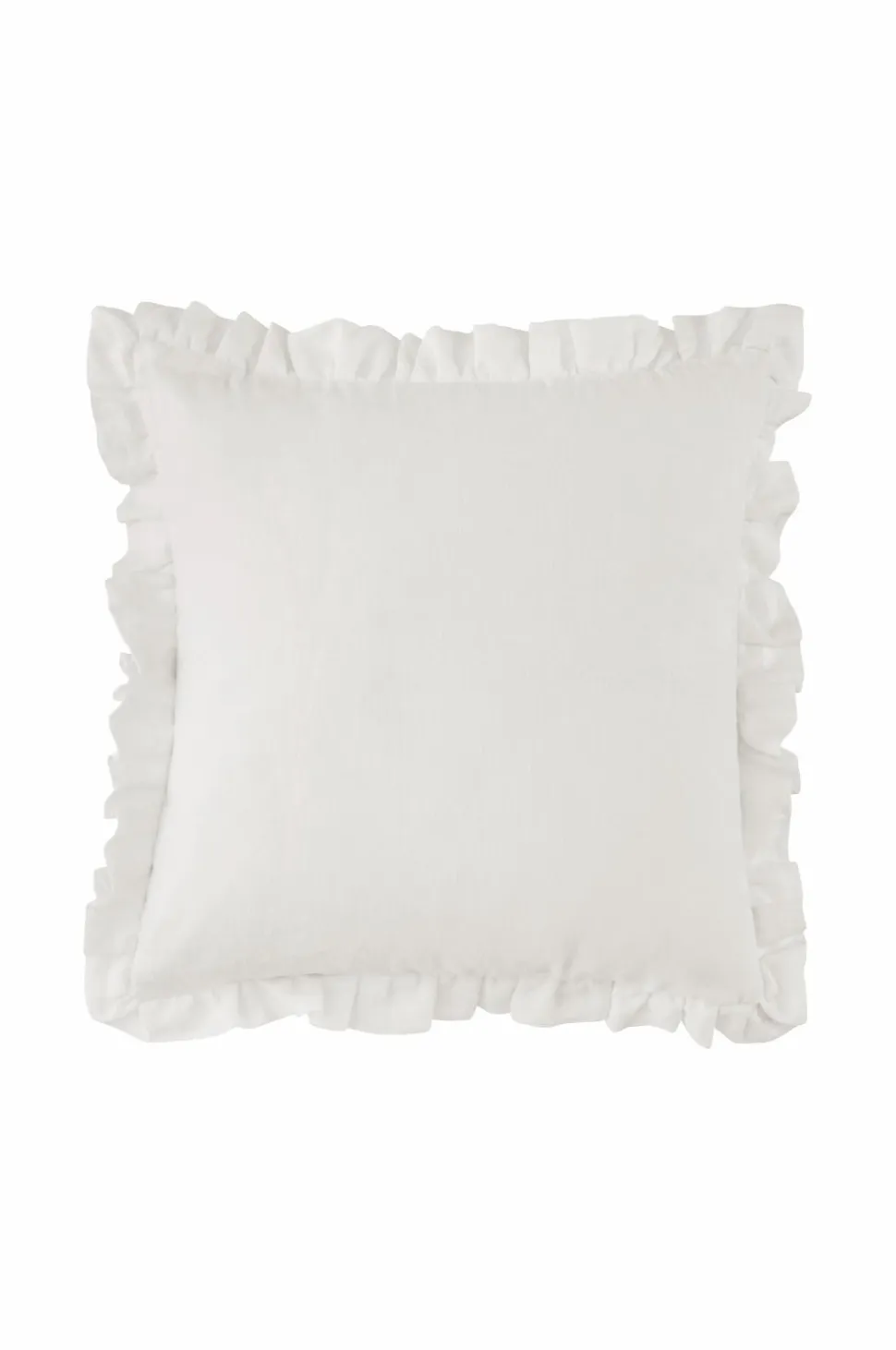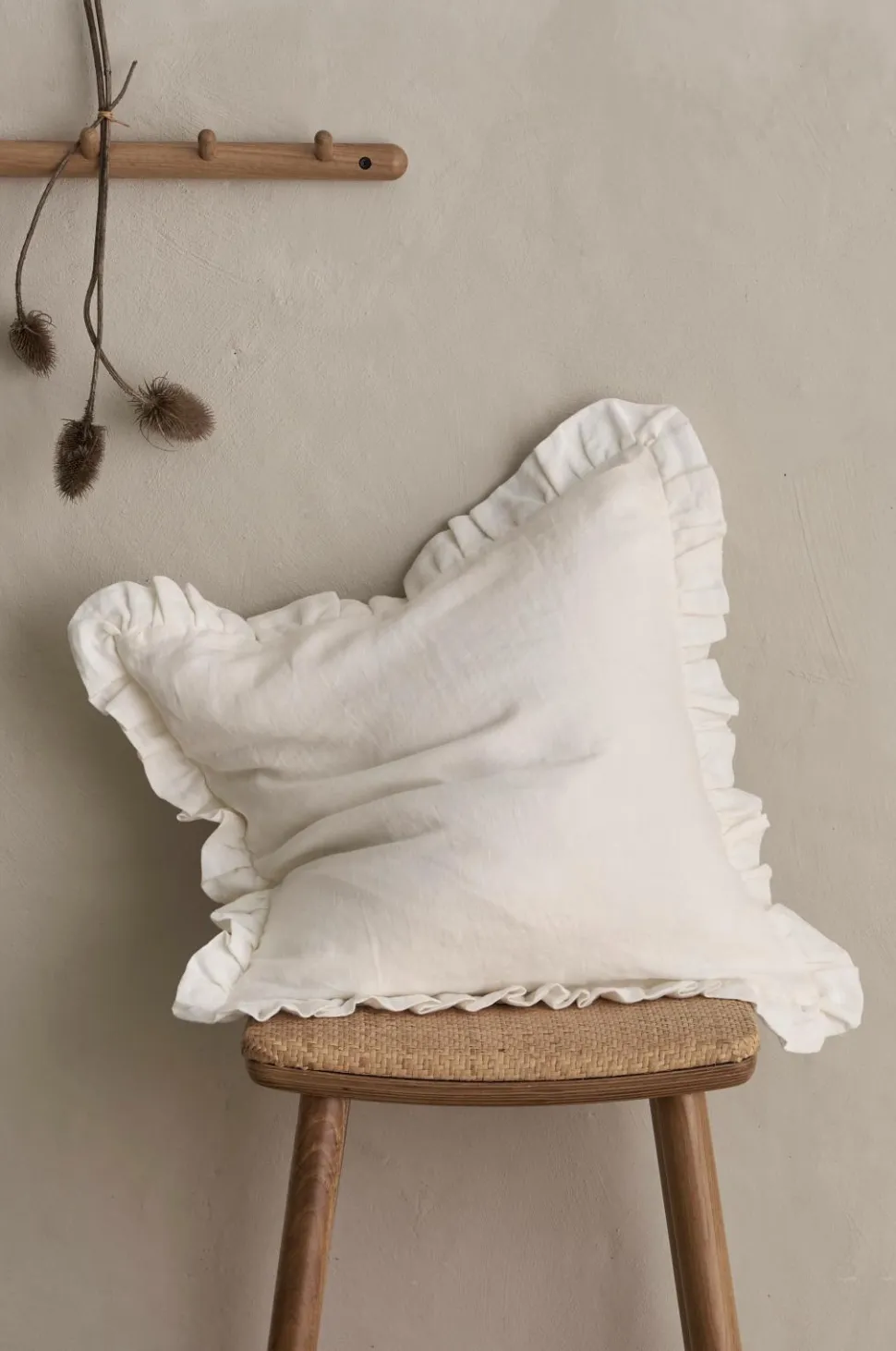 Pudebetræk i blød, vasket hørkvalitet af fransk hør. Flæse rundt om og lynlås bagpå. Str. 50×50 cm + 4,5 cm flæse.