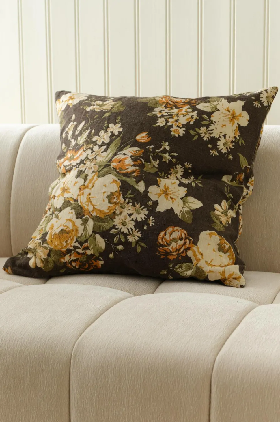 Pudebetræk i blød, vasket hørkvalitet med printet mønster. Af fransk hør. Lynlås.