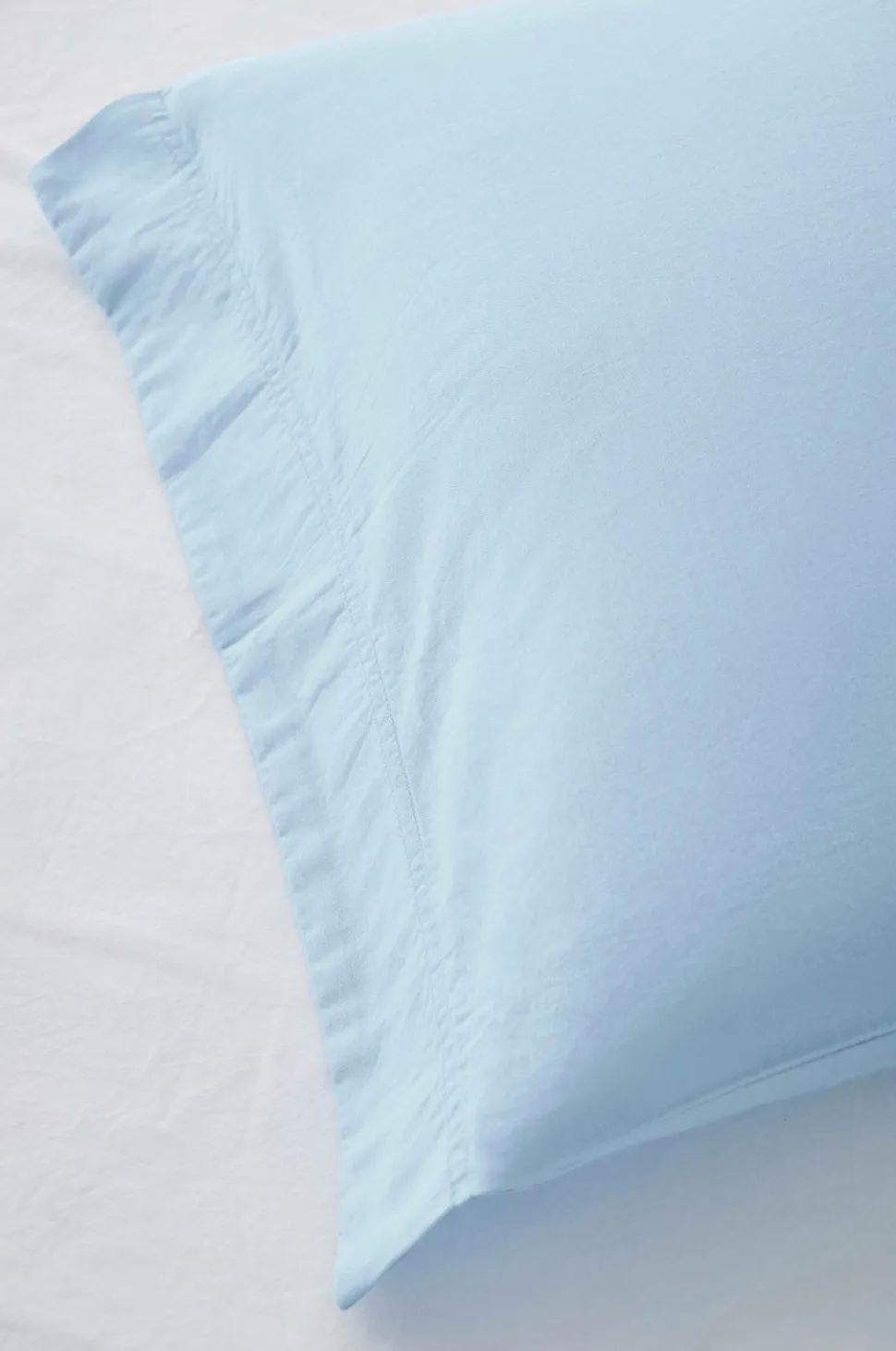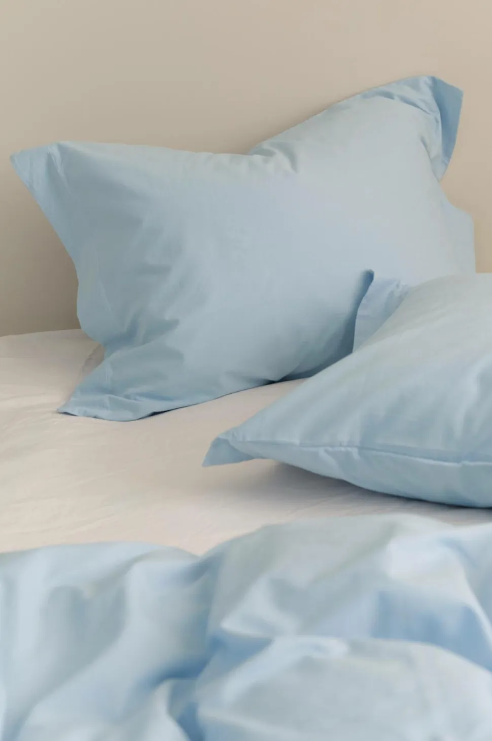 Pudebetræk i skøn kvalitet af blødvasket bomuld. Trådtæthed 144 tc. Stykfarvet. Str. pudebetræk 50×60 cm + 5 cm vinge på kortsiderne.