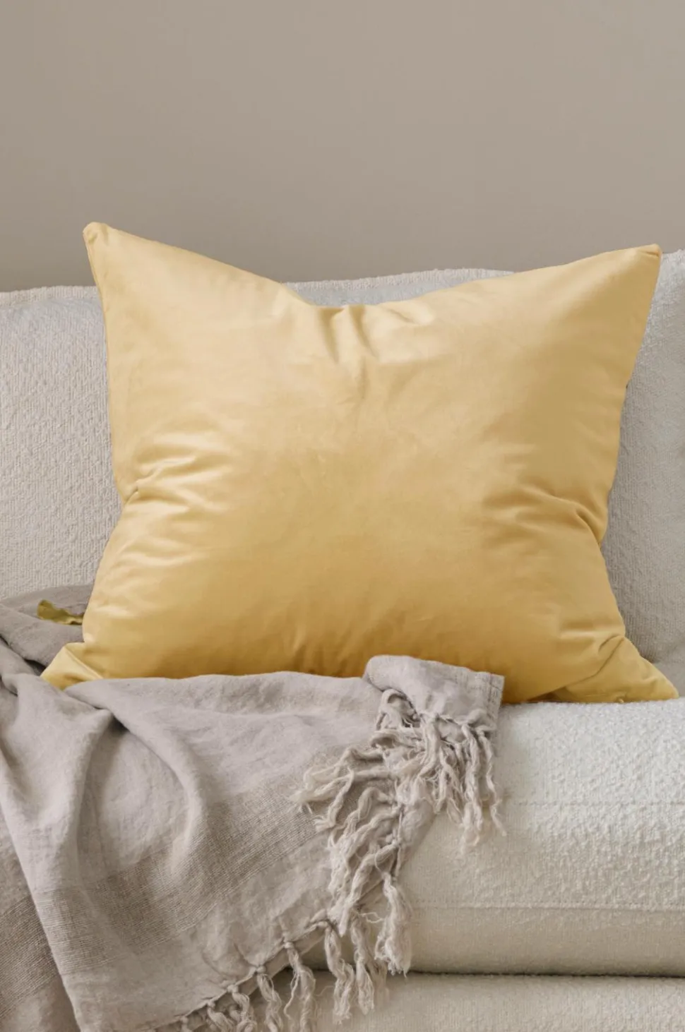 Pudebetræk af velour med fin glans. Af genindvundet polyester. Lynlås i bunden.