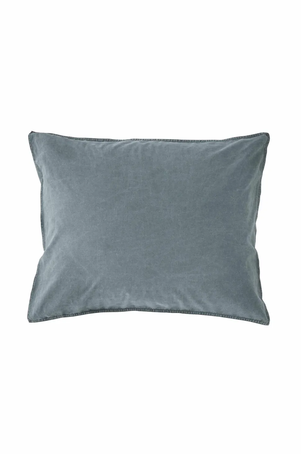 Pudebetræk i vintagevasket økologisk bomuld. Trådtæthed 144 TC. Dobbelte jeanssømme hele vejen rundt. Leveres i stofpose i samme kvalitet med løbegang. Str. 50×60 cm.
