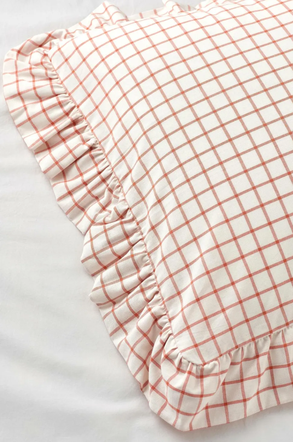 • Pudebetræk i blød bomuld med garnfarvede kvadrater