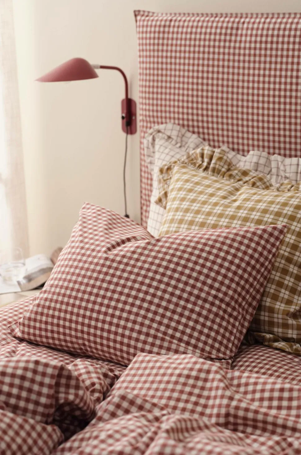 • Pudebetræk i blød bomuld med garnfarvede kvadrater