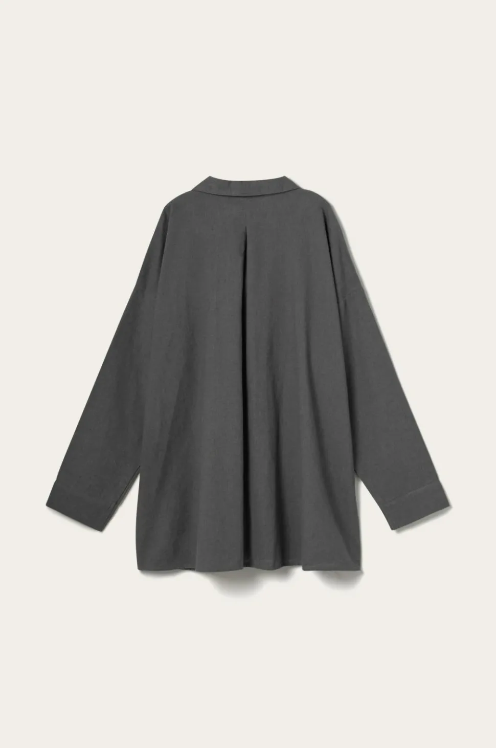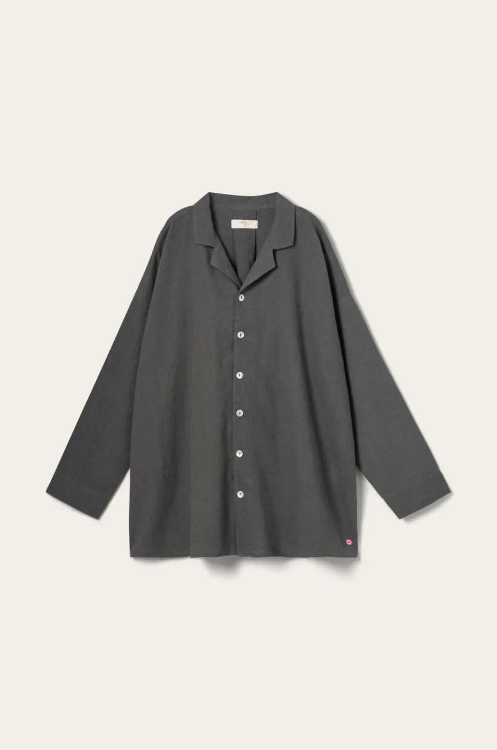 • Pyjamasskjorte i bomuld og hør med blød, vasket afslutning