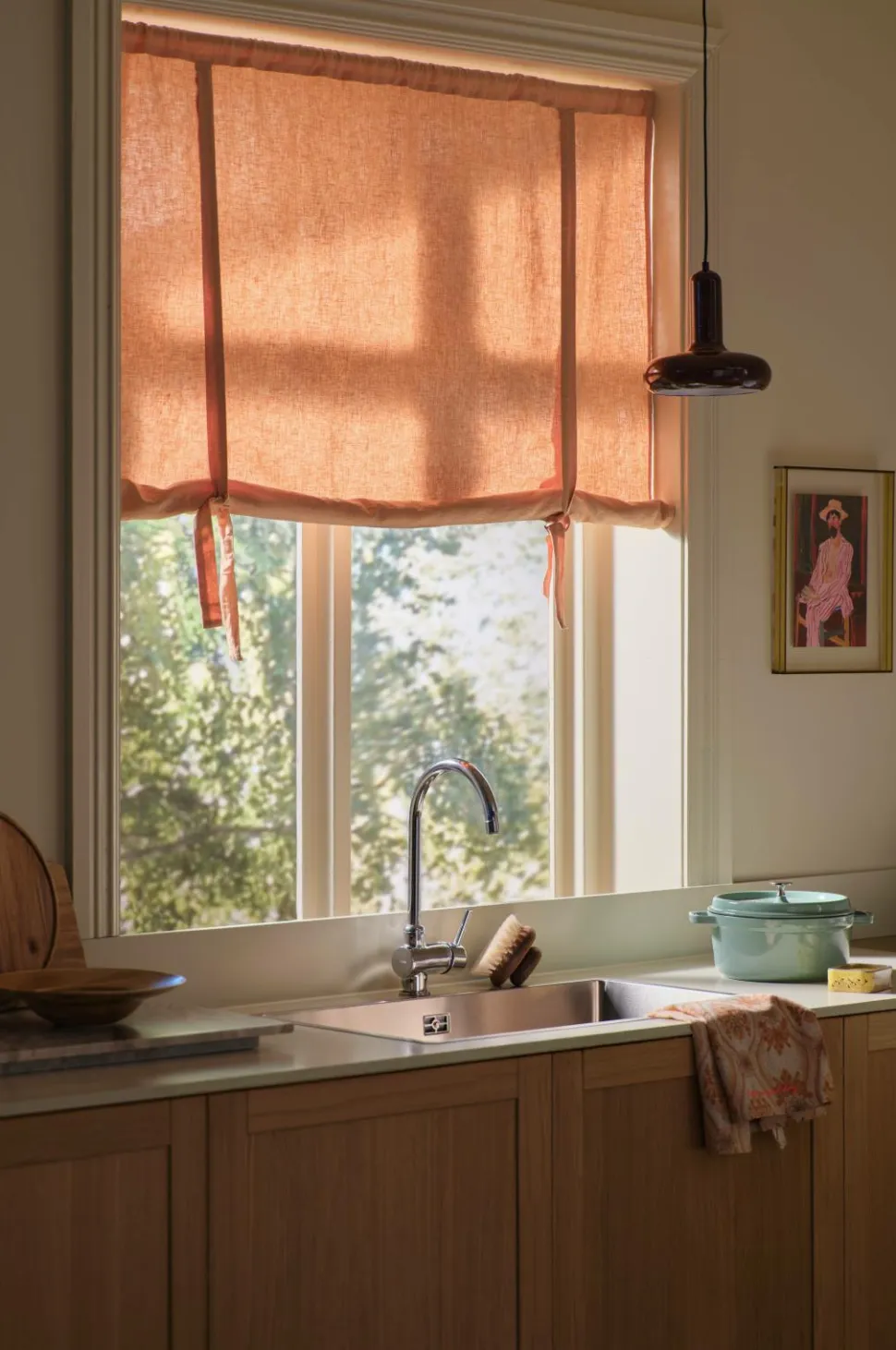 • Hvis du vil have en lige kant, skal du rulle gardinet rundt om en træpind (træpind medfølger ikke).