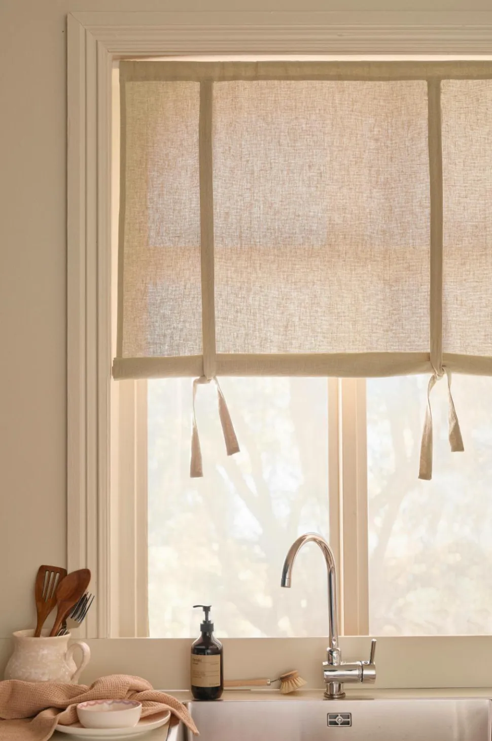 • Hvis du vil have en lige kant, skal du rulle gardinet rundt om en træpind (træpind medfølger ikke).