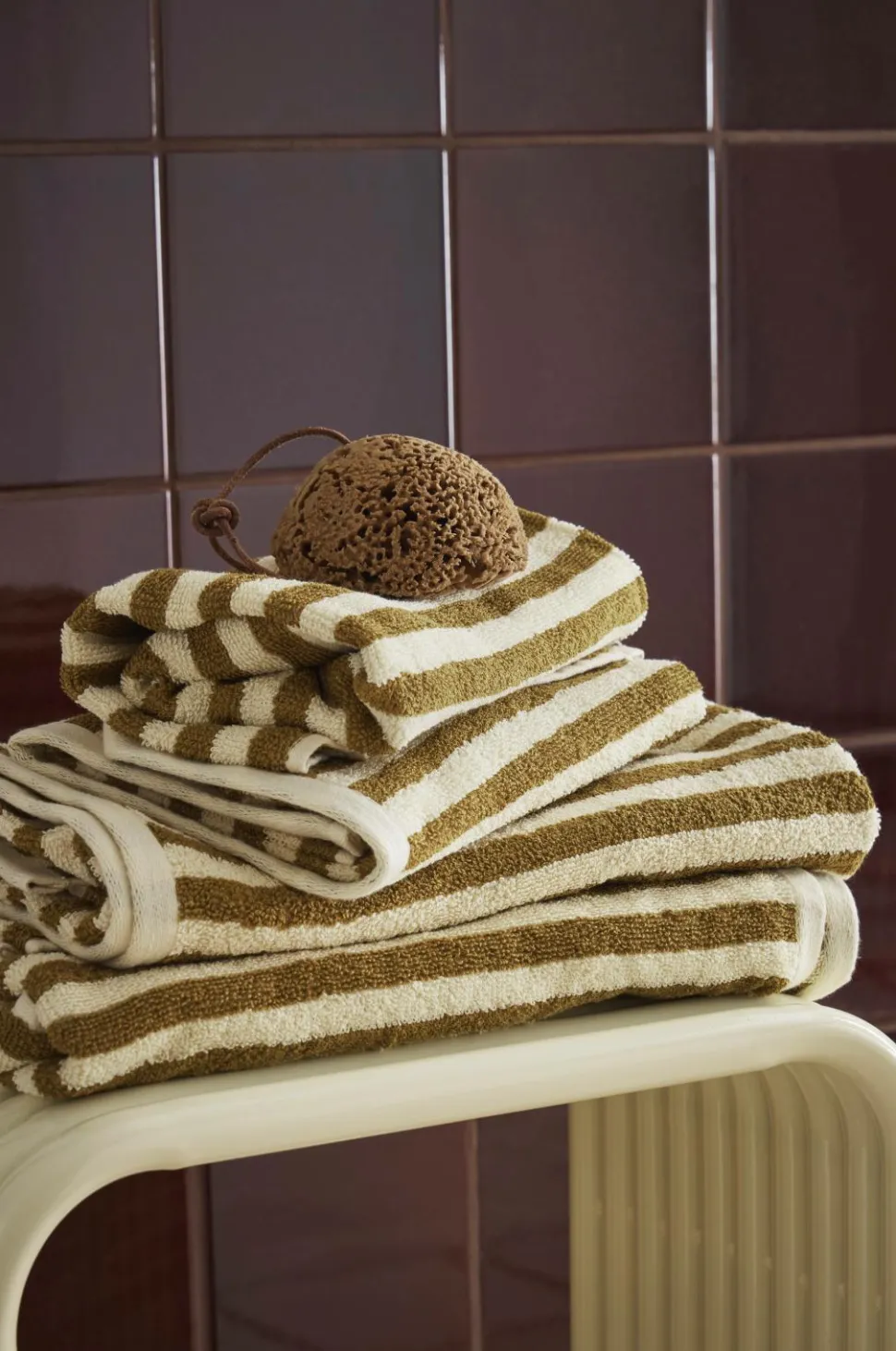 • Håndklæder i blødt, komfortabelt bomuldsfrotté med garnfarvede striber
