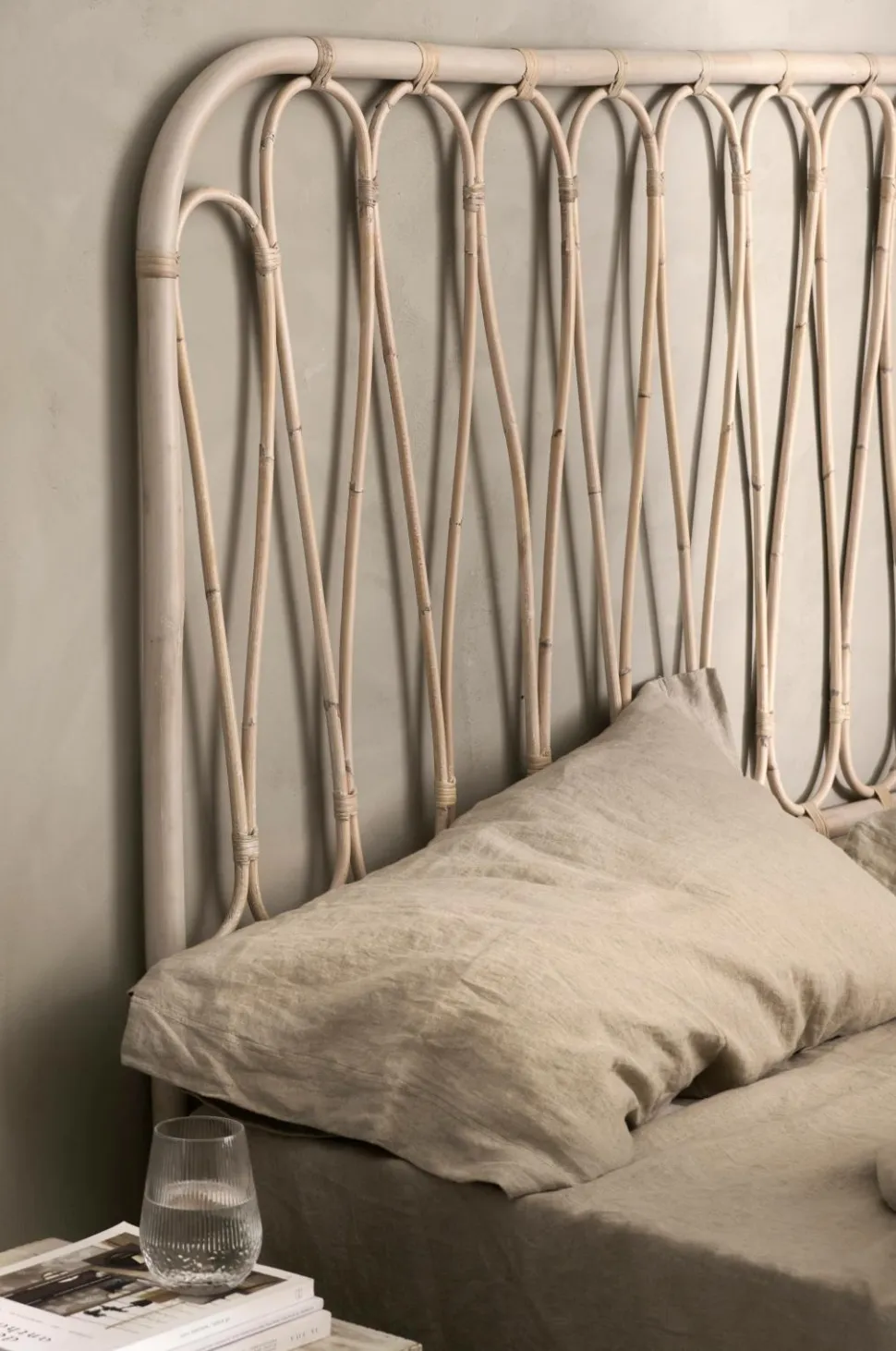 Hovedgavl i rotting med et dekorativt mønster. Gavlen stilles på gulvet.