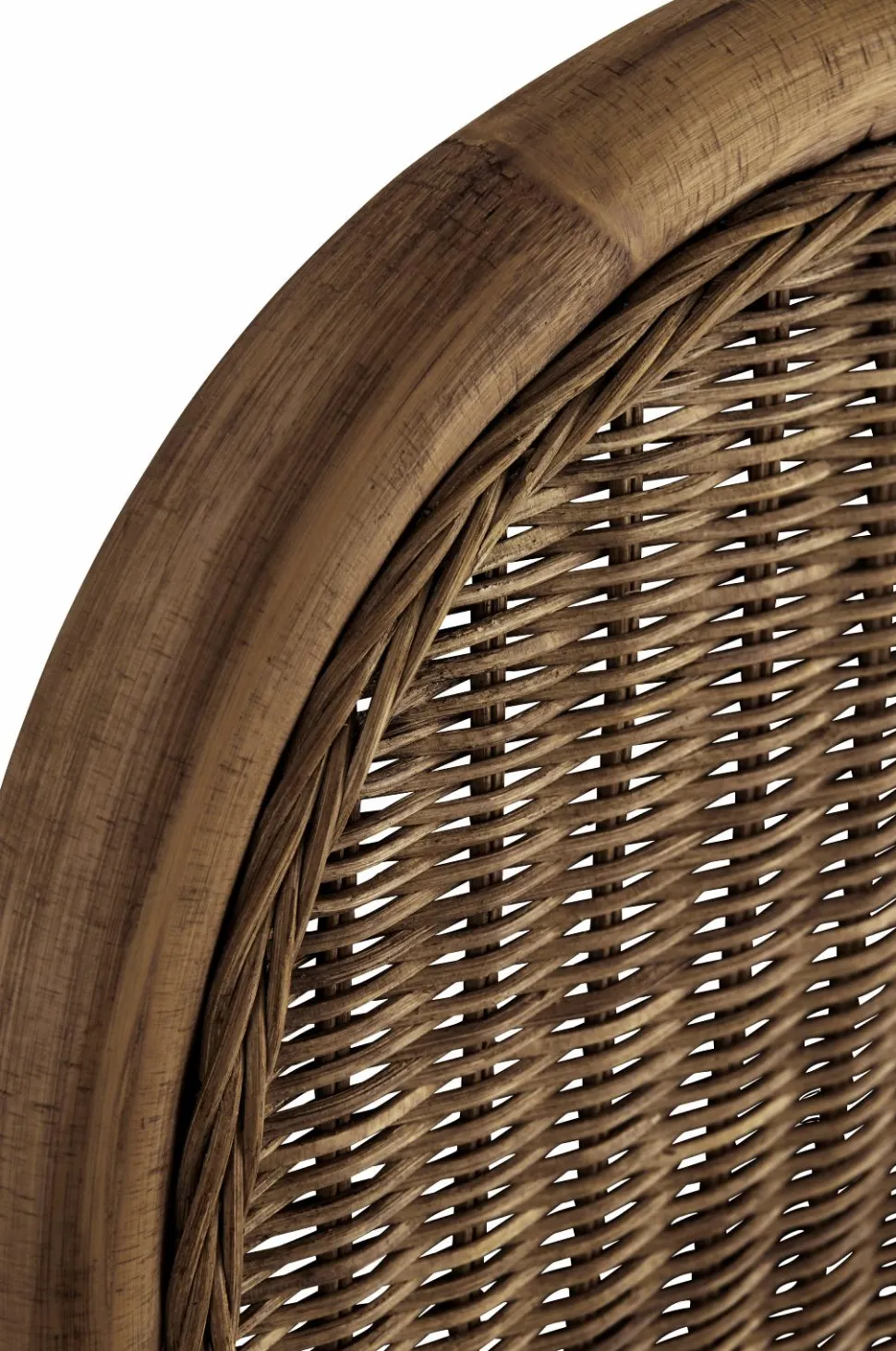 Hovedgavl i rotting med tætvævet top og dekorativ kant. Gavlen stilles på gulvet. Bredde 160 cm, højde 137 cm, dybde 4 cm. Benhøjde 24 cm.