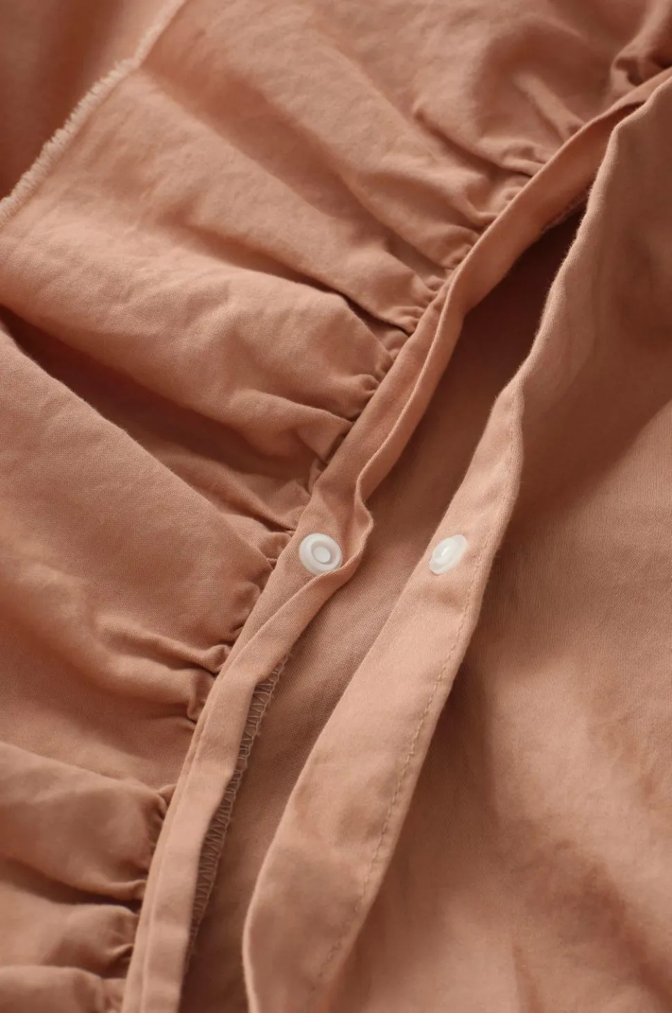• Af bomuldssatin i vasket kvalitet som giver en silkemat, let glans og et blødt, glat udtryk. Stoffet føles køligt og behageligt mod huden og er både smidigt og praktisk.