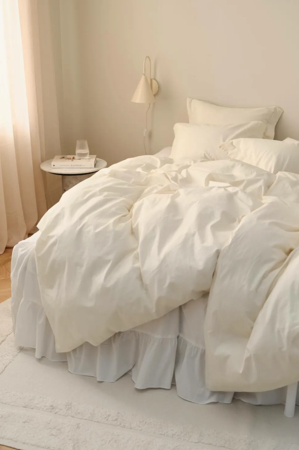 3-delt sæt: 1 dynebetræk 240×220 cm og 2 pudebetræk 50×60 cm + 5 cm vinge på kortsiderne.