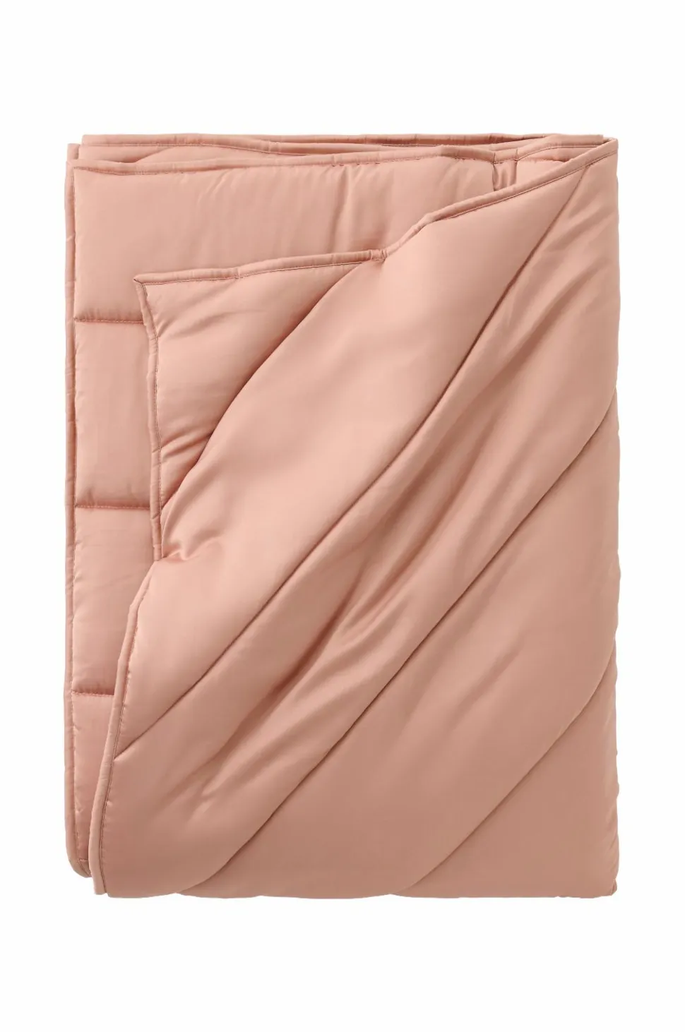 • Quiltet sengetæppe med skinnende overflade og luksuriøs følelse