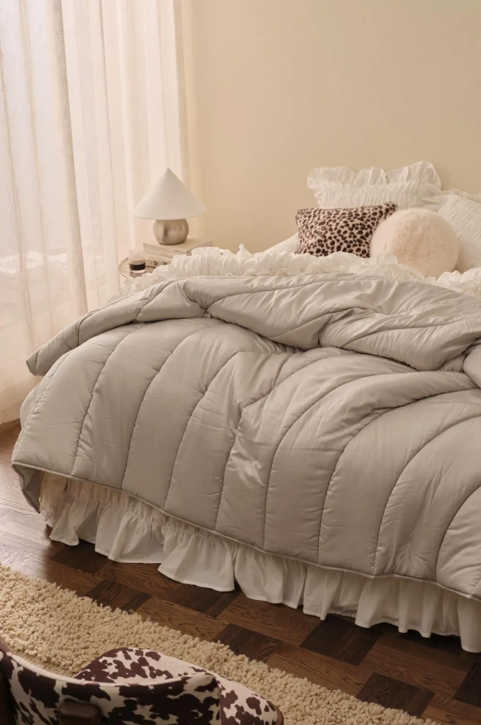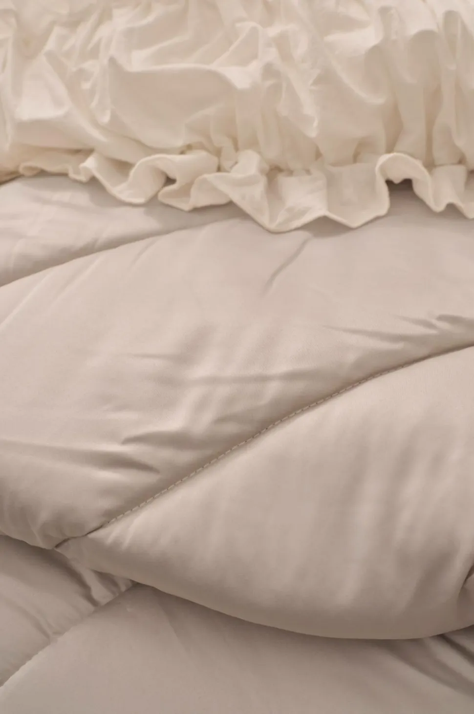 • Quiltet sengetæppe med skinnende overflade og luksuriøs følelse