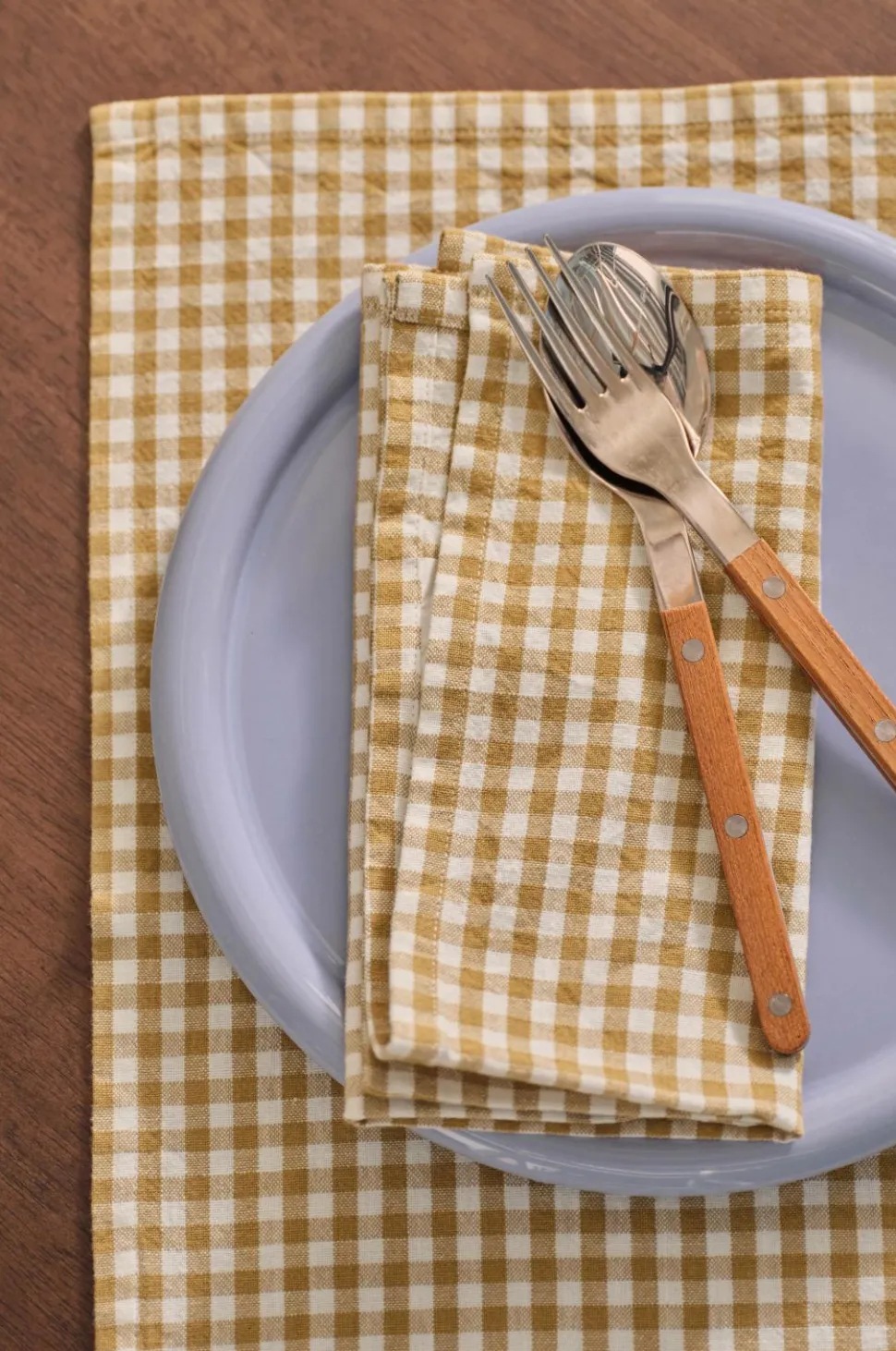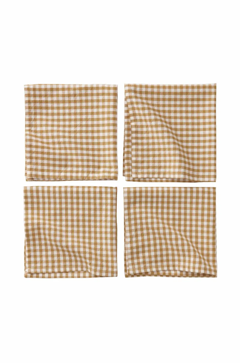 • Fire servietter i bomuld med garnfarvede kvadrater