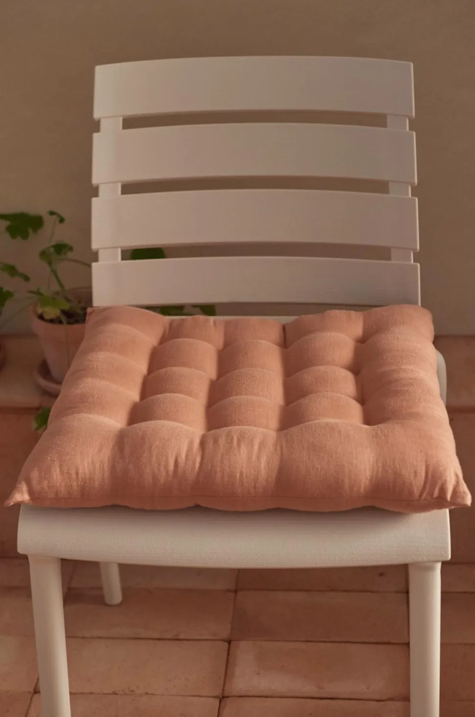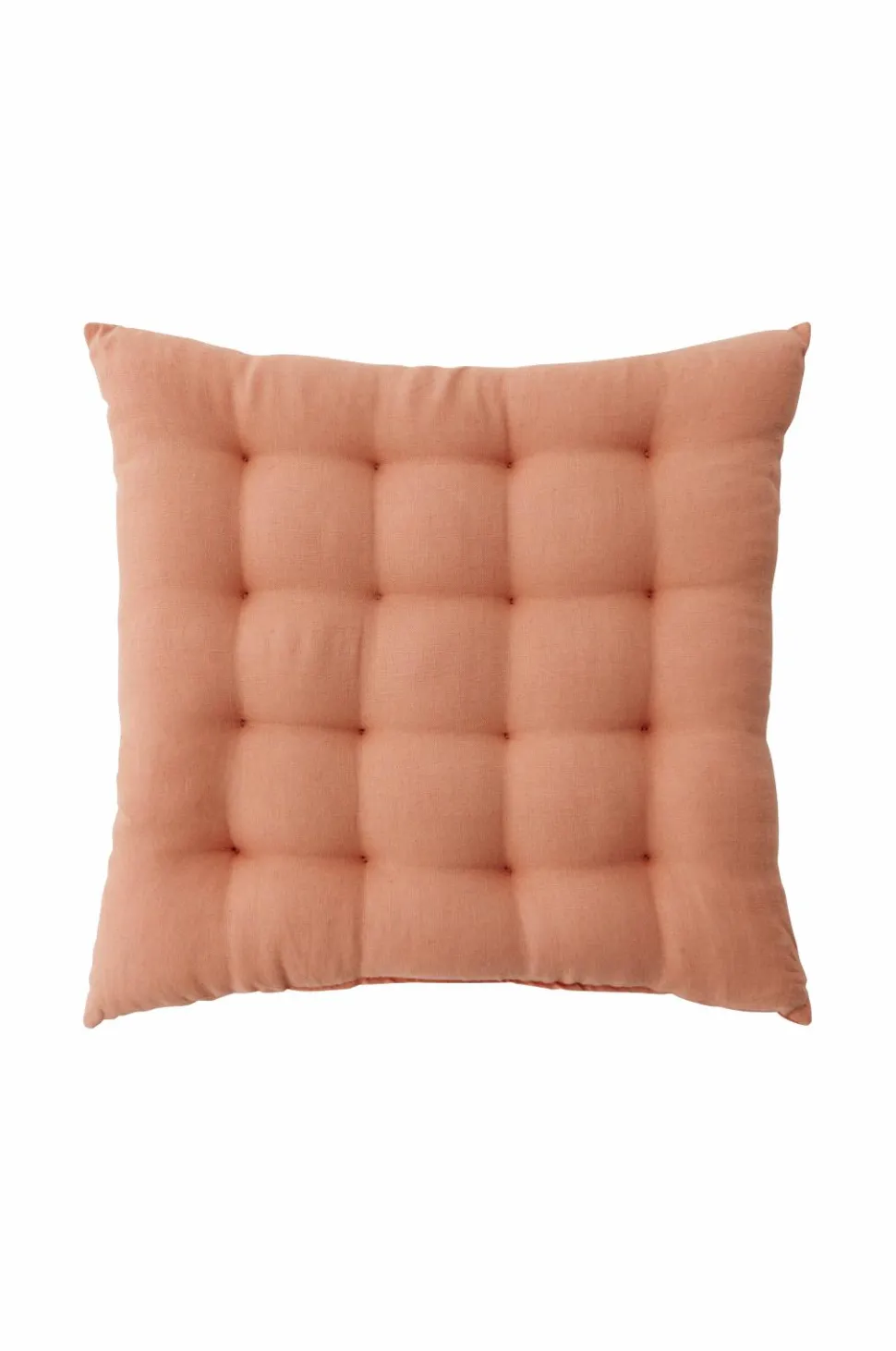 Siddehynde i blød vasket kvalitet af fransk hør med vintagelook og dekorative, håndsyede sting. Fyld af polyester. Str. 40x40x5 cm.