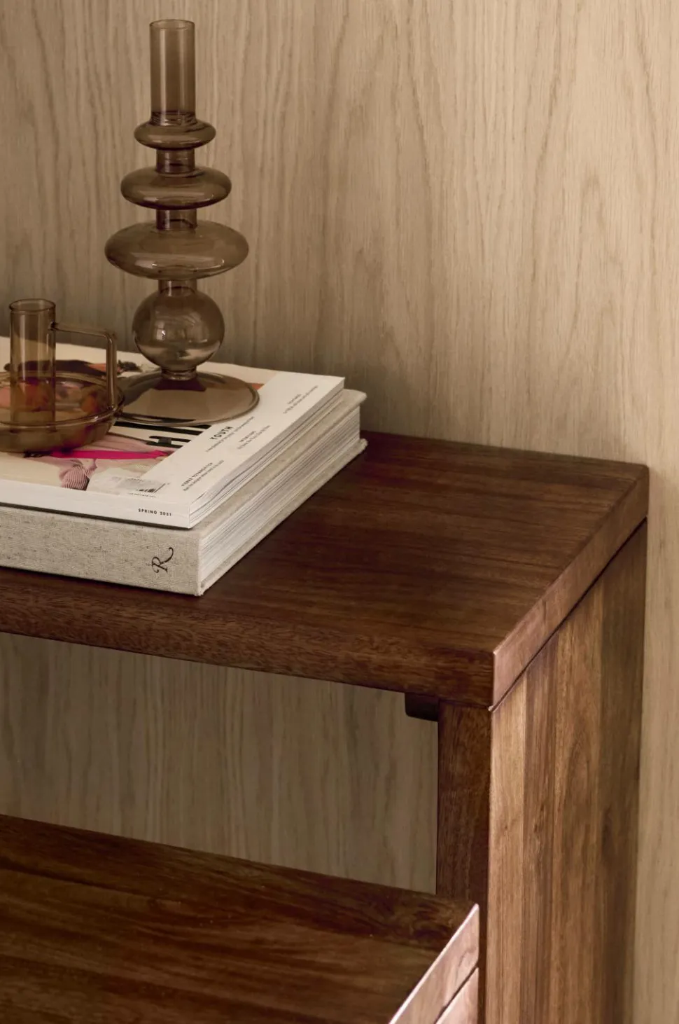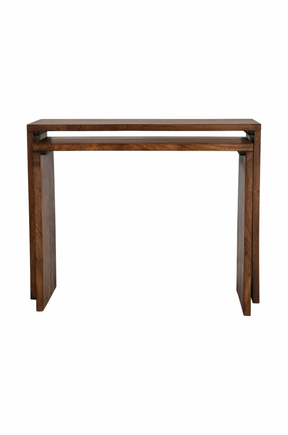 2 sideborde / skriveborde i forskellige størrelser. Kan anvendes separat eller sammen. Af massivt mangotræ med vokset finish. Lev. samlet.