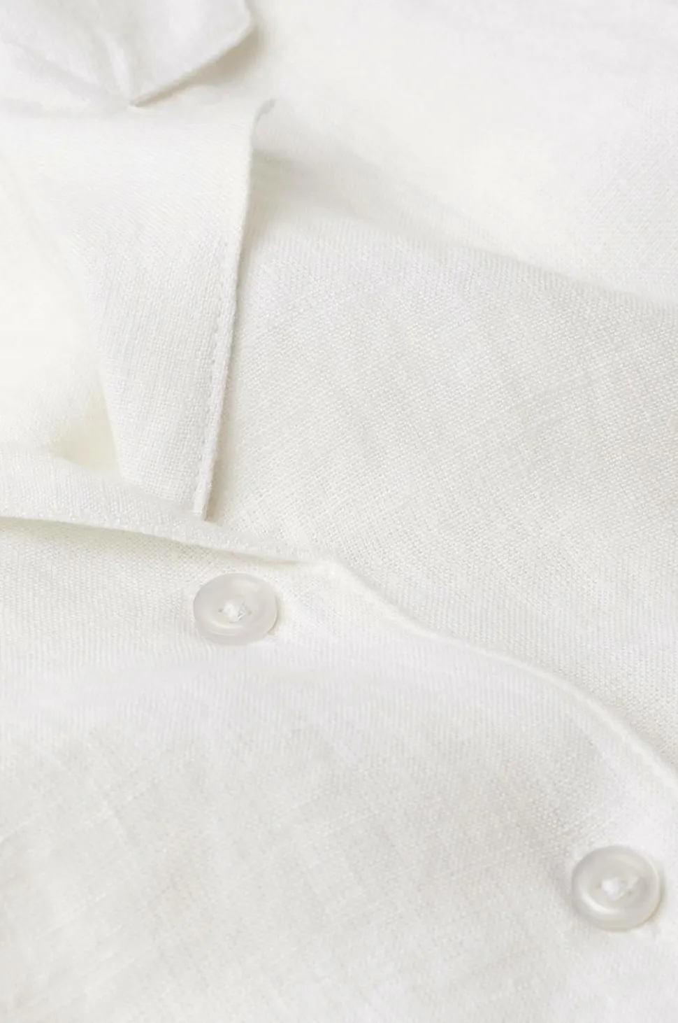 Hørskjorte i blød, kølig og vasket kvalitet af fransk hør. Lange ærmer. Krave med revers. Længde 61 cm i str. S.
