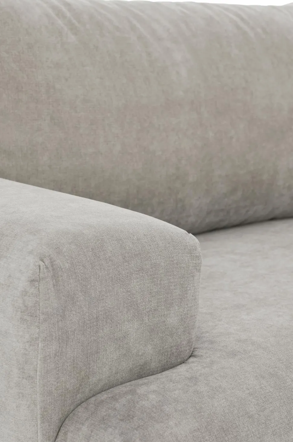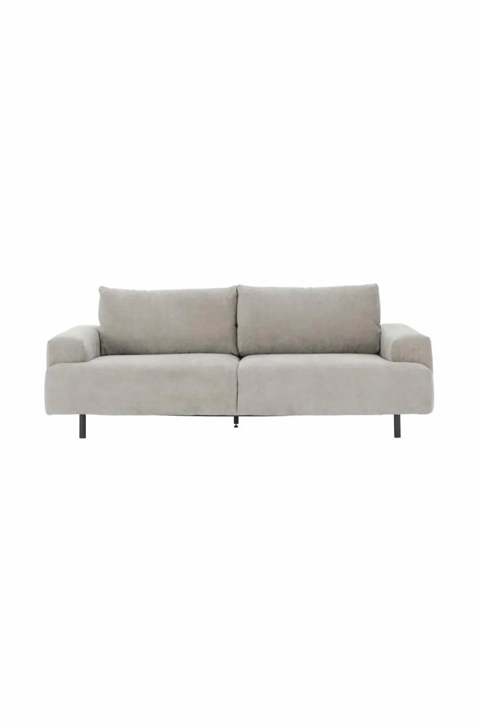 3-pers. sofa med et moderne udtryk. Betræk i blød chenille af polyester. Ryghyndernes betræk er aftageligt, fast betræk på øvrige dele. Stel af massivt træ og plywood, fyld af PU-skum.