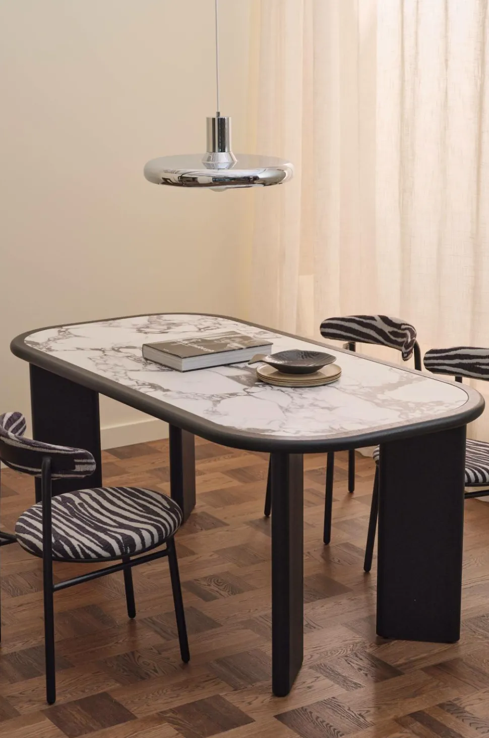 • Spisebord med bordplade i MDF med en skive i Kompositsten