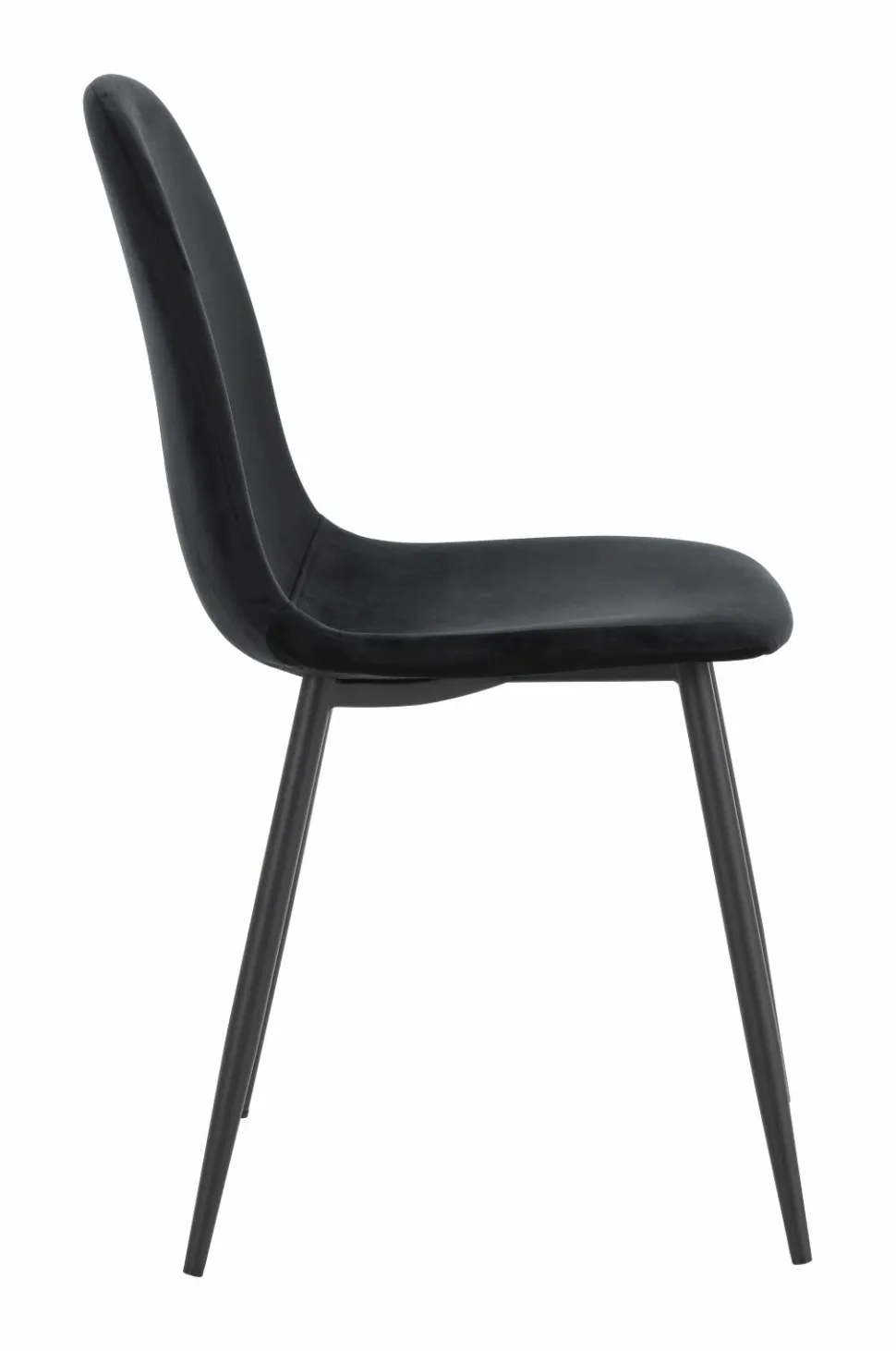 • Spisegruppe med et sæt bestående af et bord og seks stole. Bordet har pulverlakerede metalben og en plade i folieret MDF. Stole med pulverlakerede metalben. Sæde med fløjlspolstring og skumfyld.