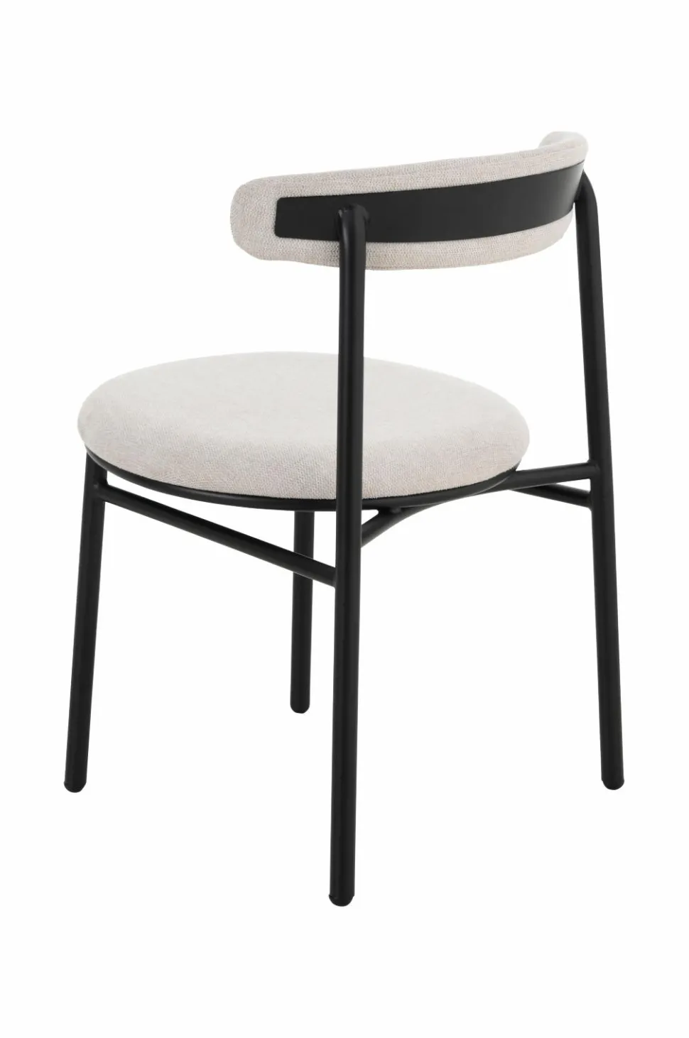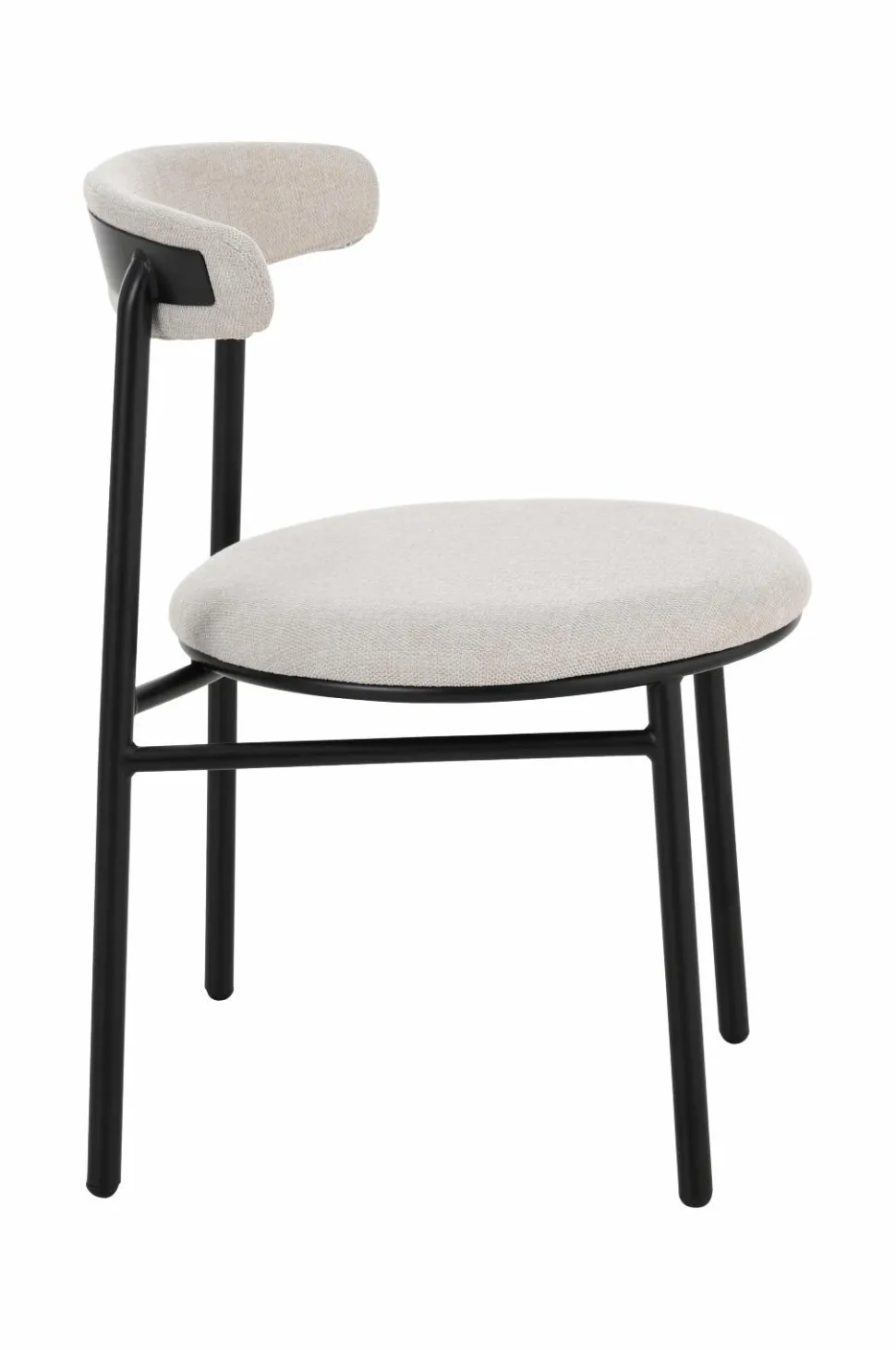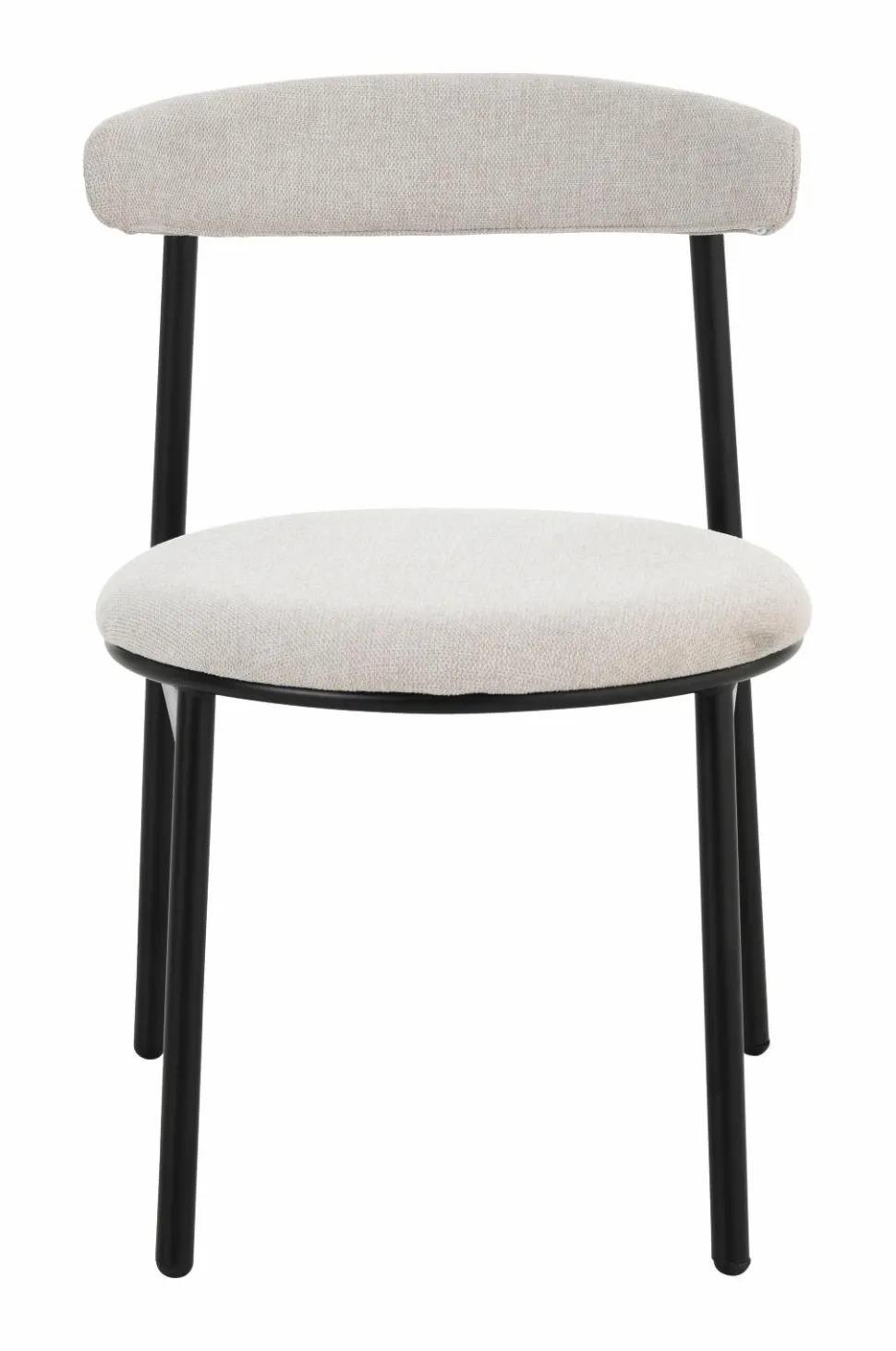 2 stole i moderne design med rundt sæde og svungen ryg. Stel og ben i metal. Sæde og ryg med skumpolstring. Lettere samling.
