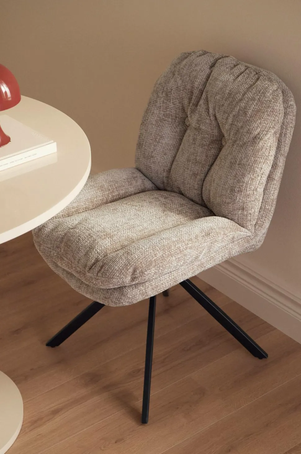 • Blød, luftig stol med polstring i behandlet chenille