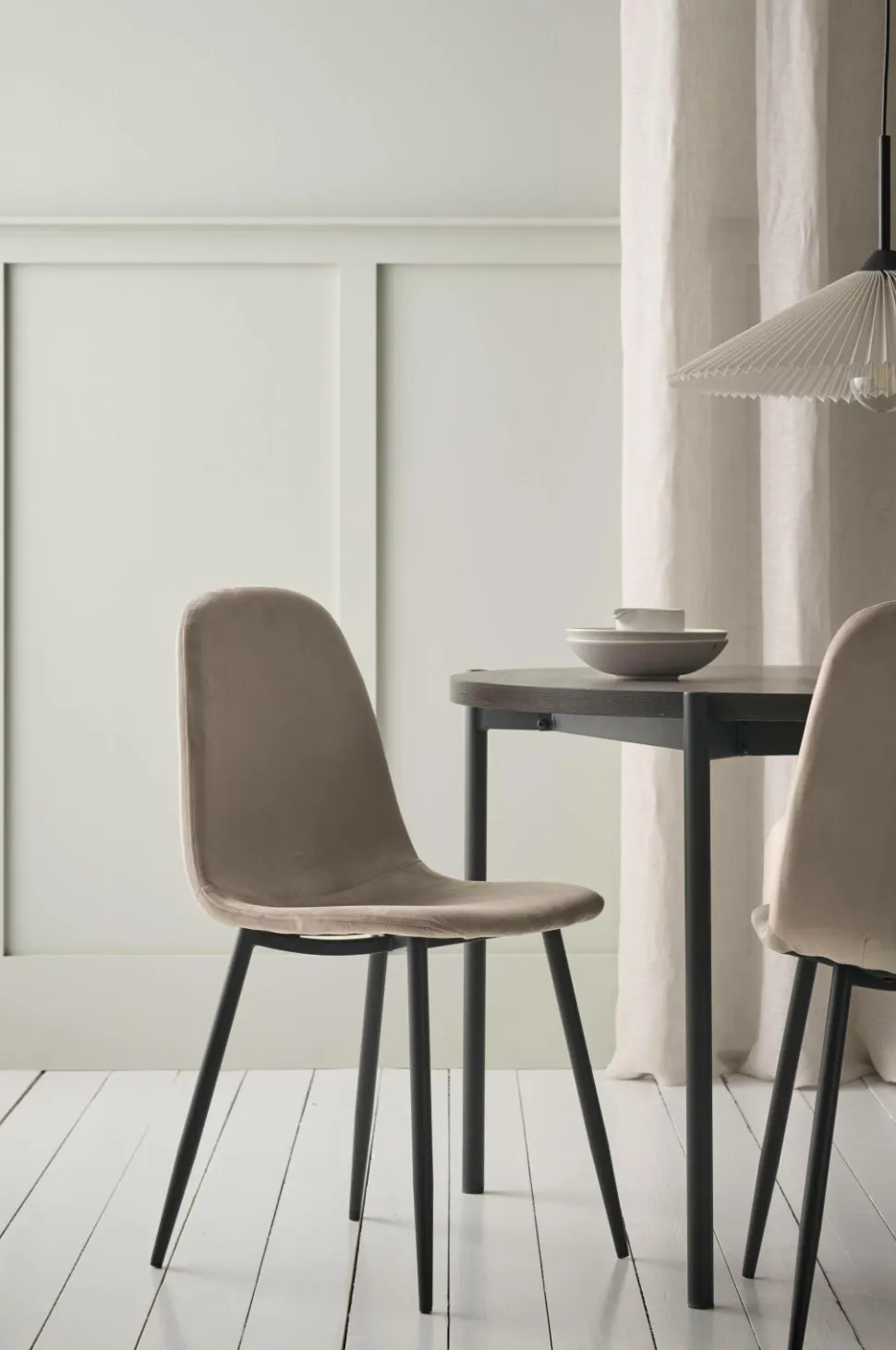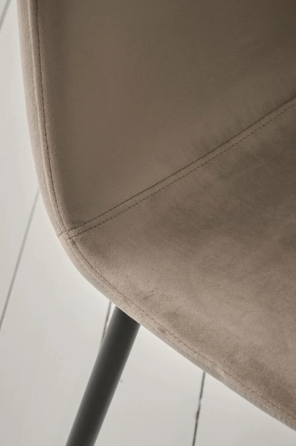 To stole med ben af pulverlakeret metal. Sæde med betræk i velour og skumpolstring. Lettere samling. Maks. belastning 120 kg.