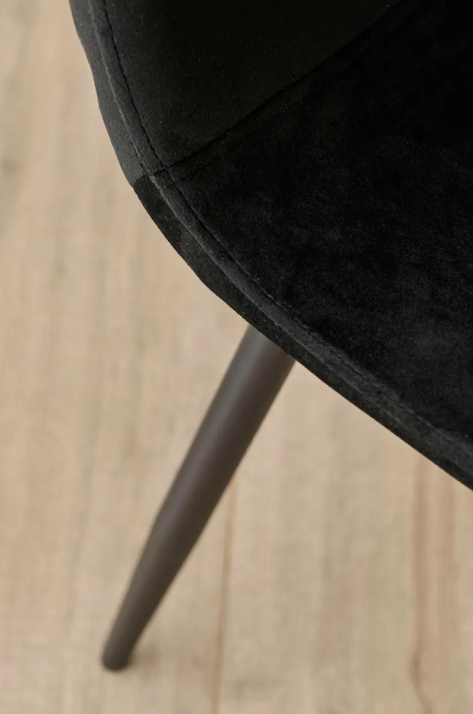 To stole med ben af pulverlakeret metal. Sæde med betræk i velour og skumpolstring. Lettere samling. Maks. belastning 120 kg.