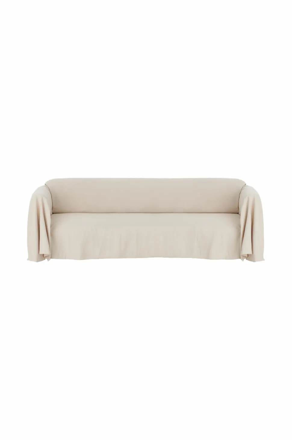 Stofbetræk i kraftig, blødvasket kvalitet. Et helt stykke stof, der draperes over sofaen. Størrelse 410×260 cm.