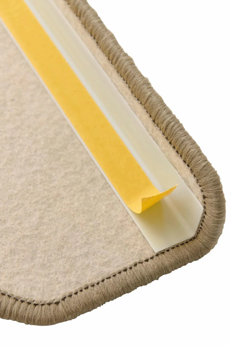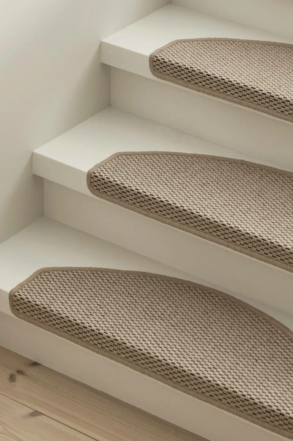 Trappeskåner i 2-pak. Vævet i sisallignende struktur, kanter med kantsyning. Bagside af hårdplastprofil og dobbelklæbende tape. Str. 28×65 cm.