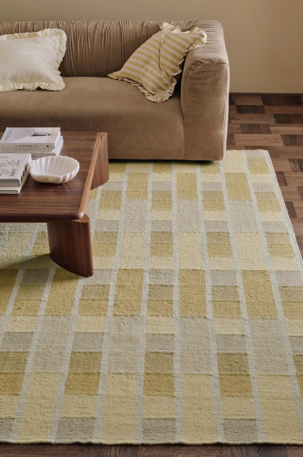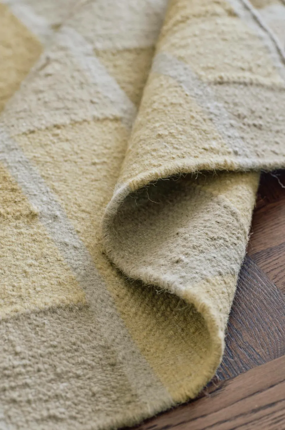 • Håndvævet, glat uldgulvtæppe