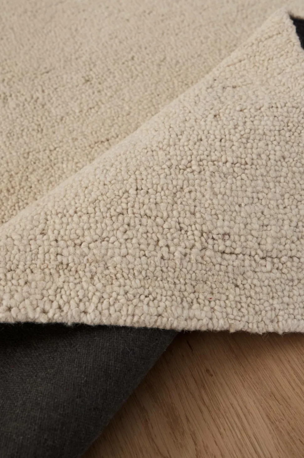 • Håndtuftet uldgulvtæppe i bouclé-look med irregulær struktur
