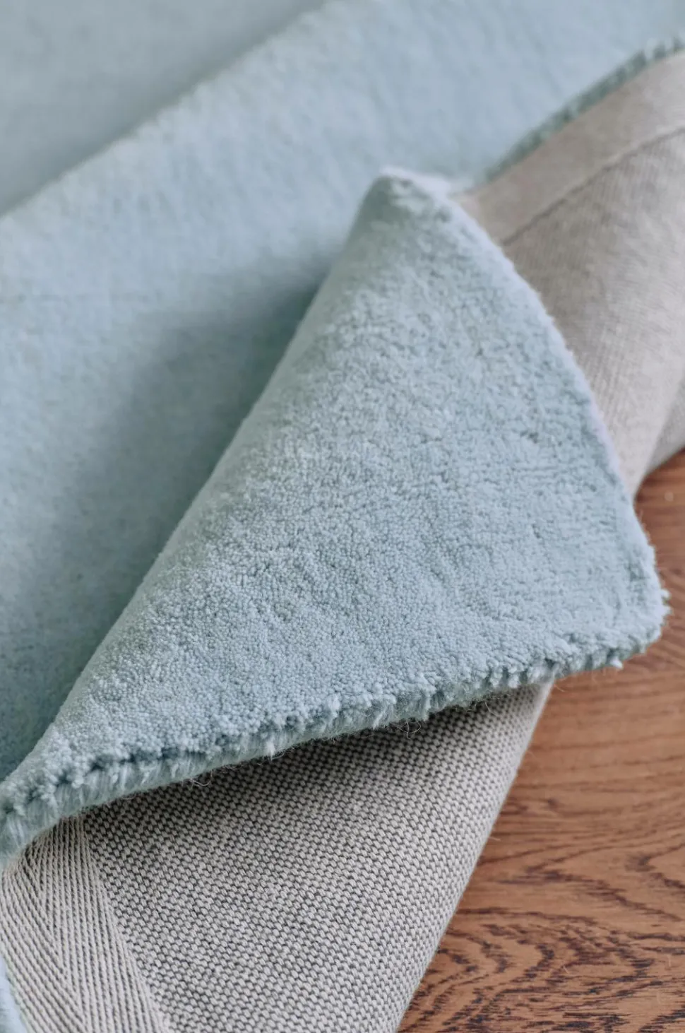 • Håndvævet, håndtuftet uldgulvtæppe