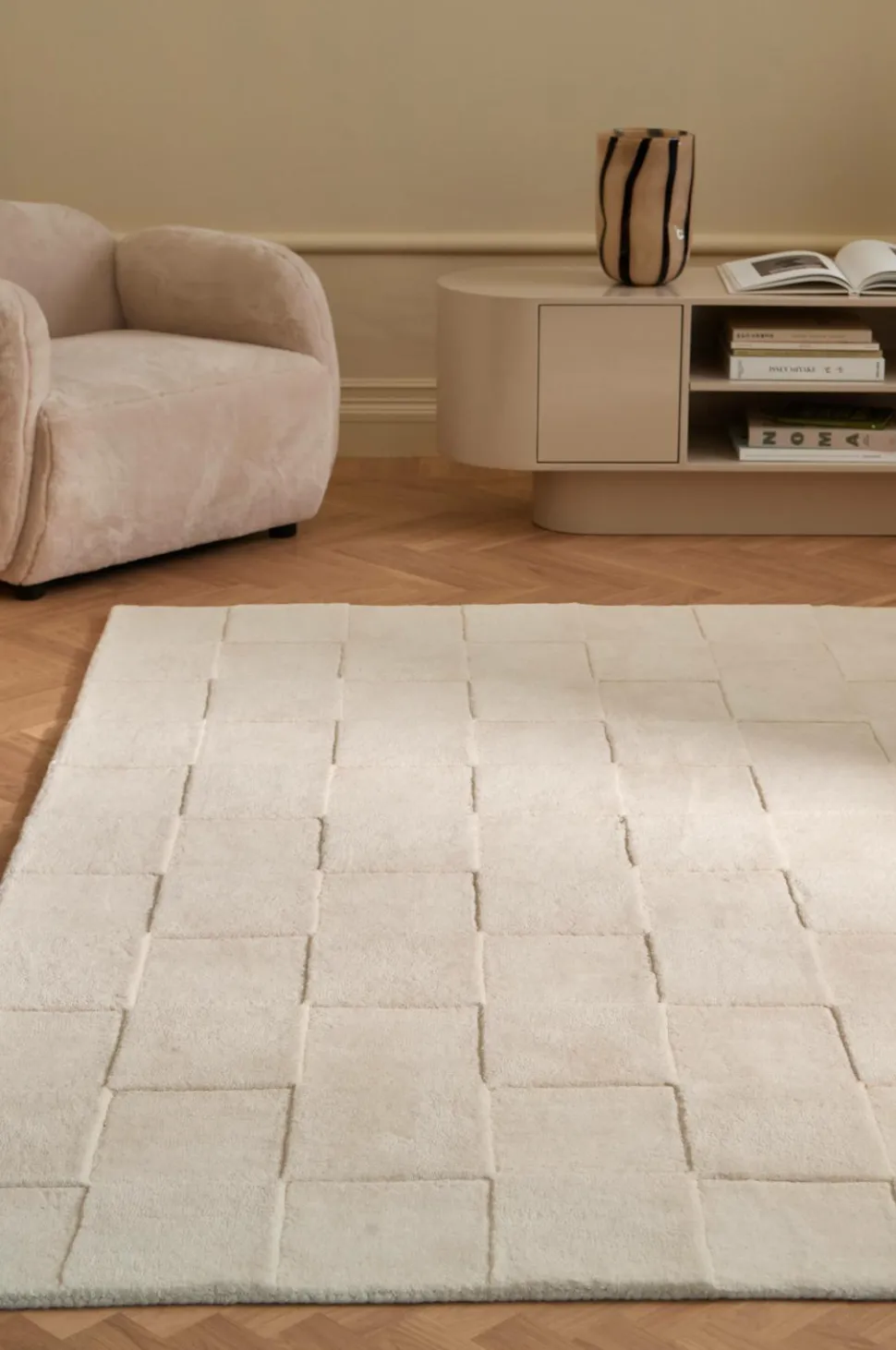 • Håndtuftet uldgulvtæppe i tyk kvalitet