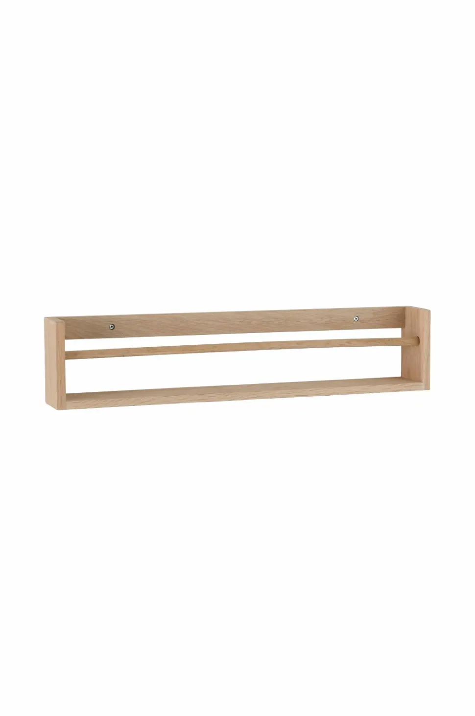 En mindre hylde/knagerække som er vendbar og kan hænges på to måder. Det gør at den har mange anvendelsesområder, f.eks. som håndklædeholder, krydderihylde, knagerække eller en minihylde til småting. Fremstillet af massiv, sæbebehandlet eg.