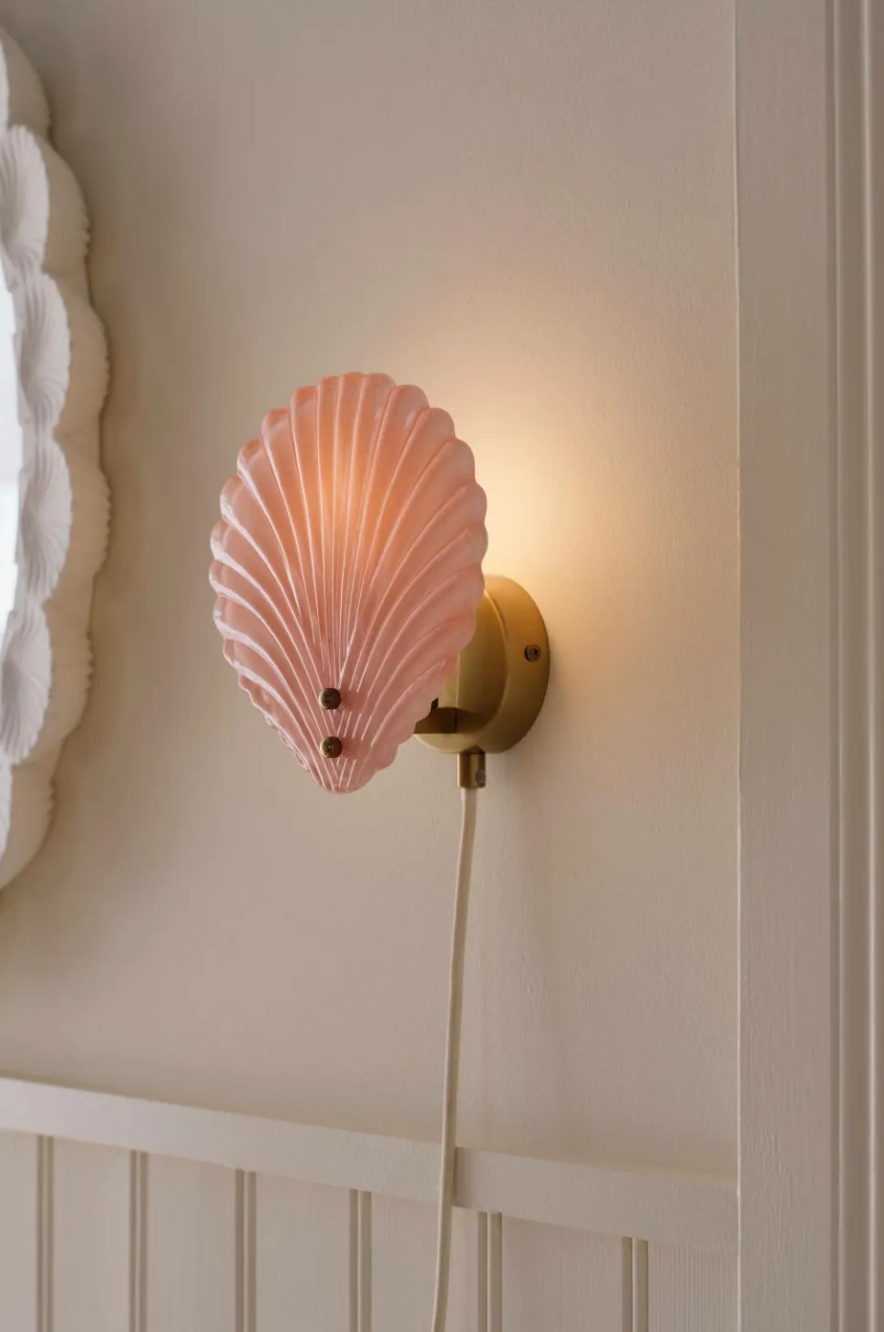 • Muslingeformet væglampe i glas og metal
