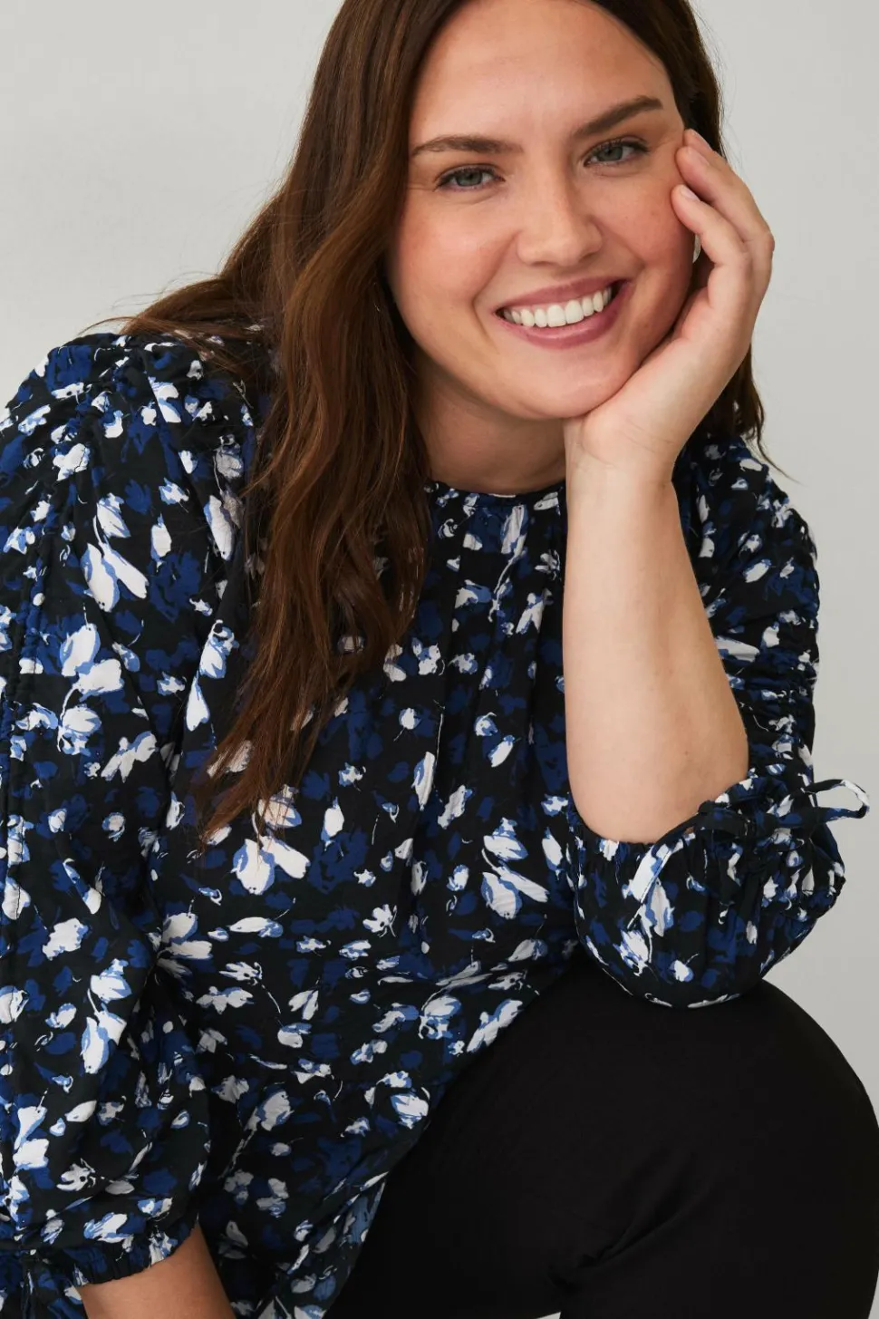 • 3/4 lange ærmer med rynkede detaljer