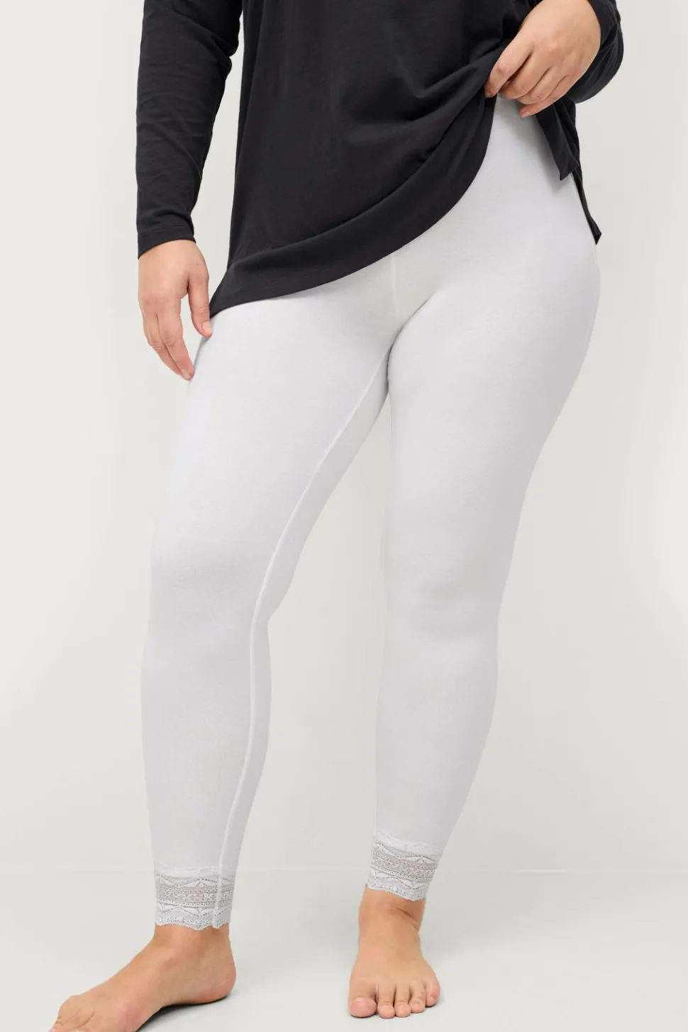 • Ankellange leggings med blonde ved enden af benene