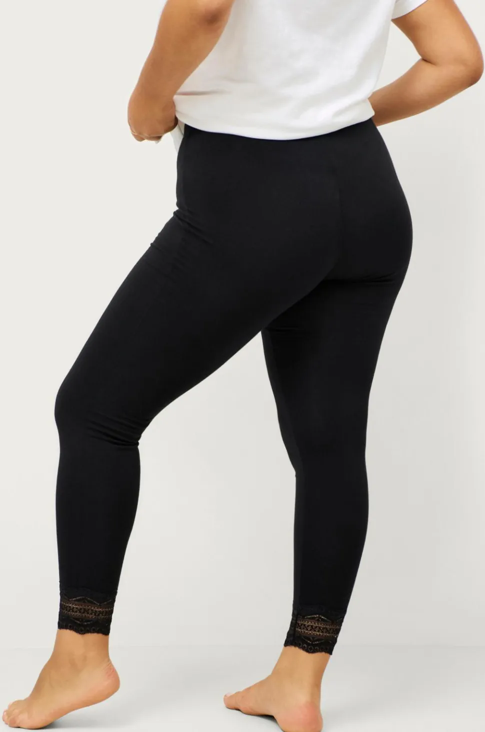 • Ankellange leggings med blonde ved enden af benene