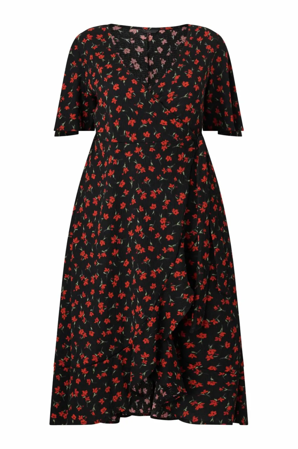 • Maxi-model i crepe med bindebånd ved taljen og elastik bagpå